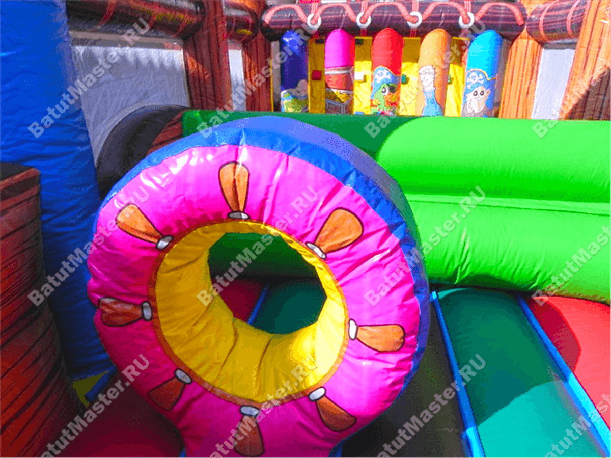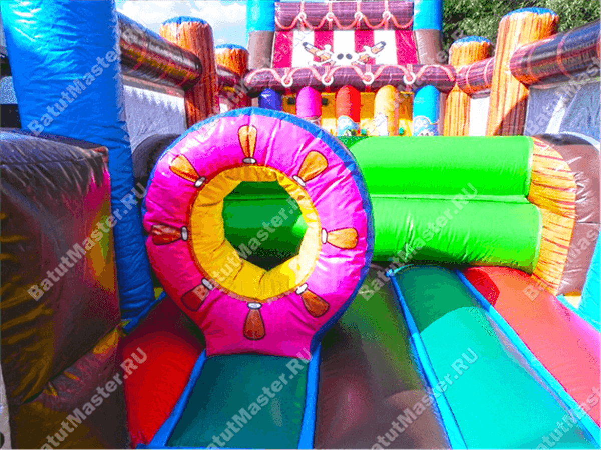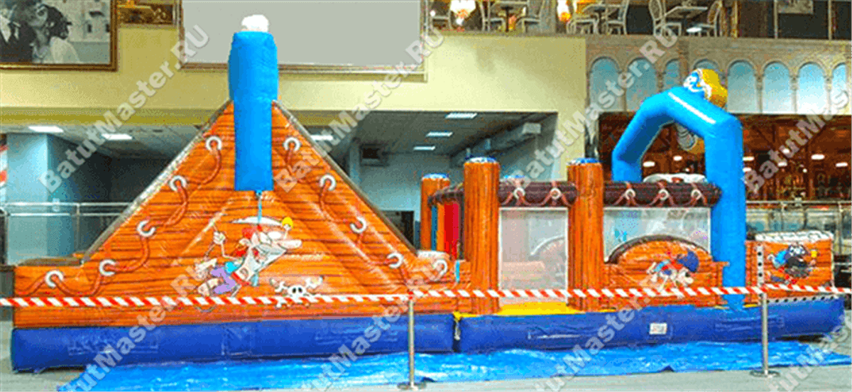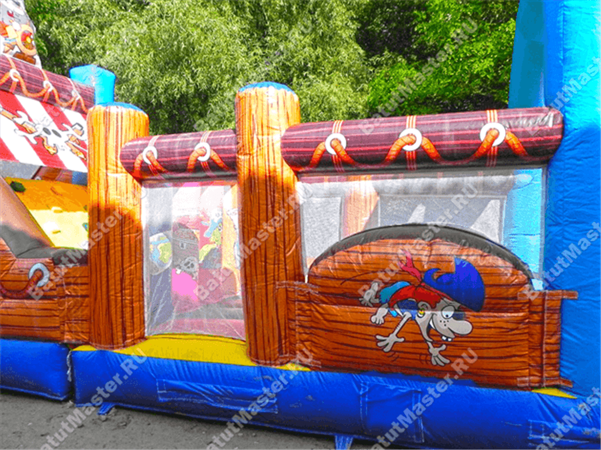 Что может порадовать детей, кроме фееричных развлечений и головокружительного веселья? Конечно, пиратская тематика! Именно в таком стиле и оформлен надувной батут «Полоса препятствий пиратская». Окунуться в морскую пучину, насладиться абордажными приключениями, захватить вражеское судно, бросить якорь в родном порту, покорить неприступные скалы, и многие другие развлечения ждут маленьких пассажиров этого корабля.