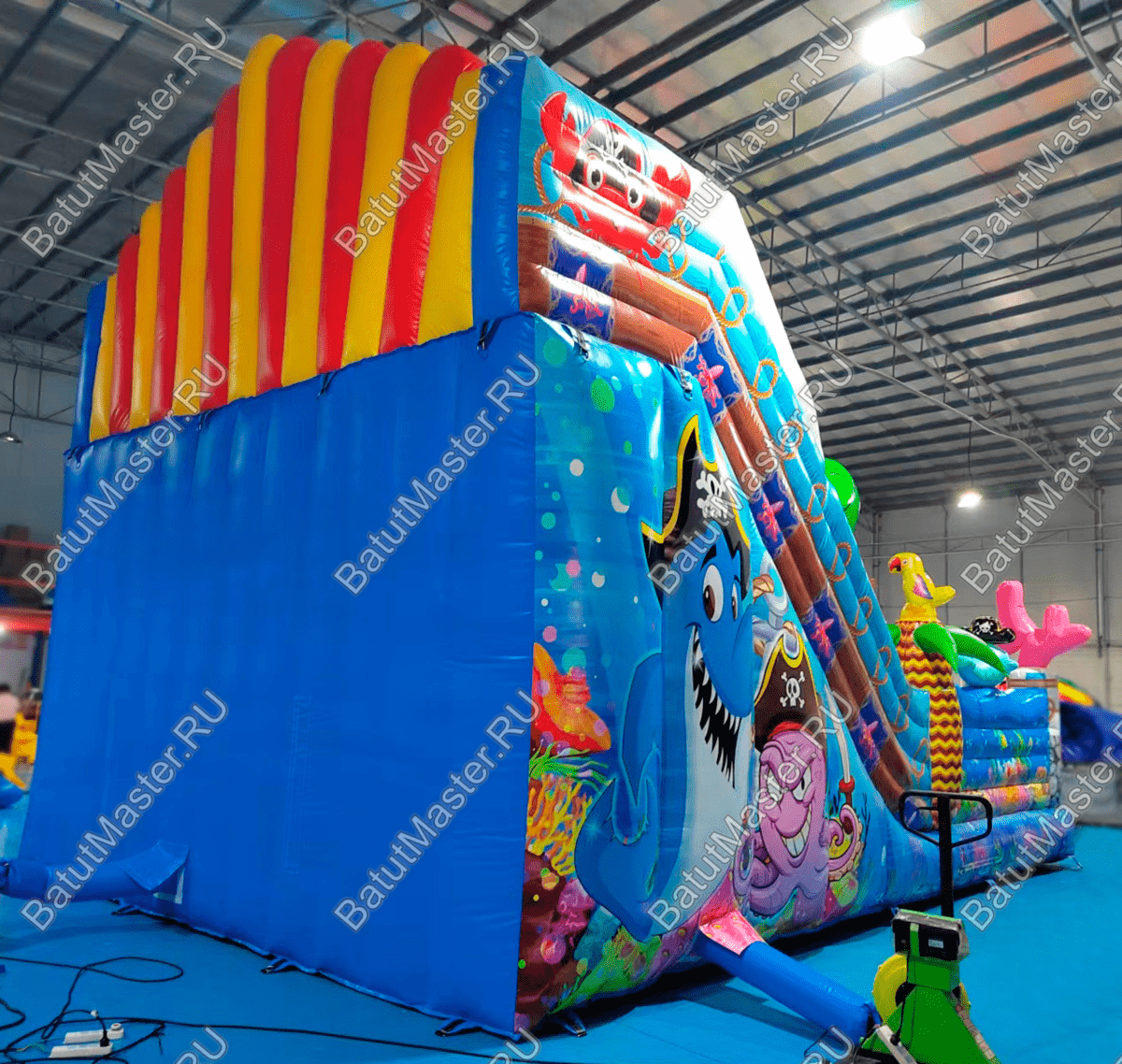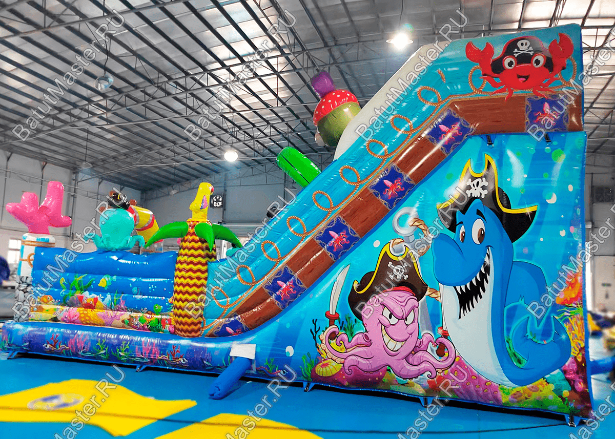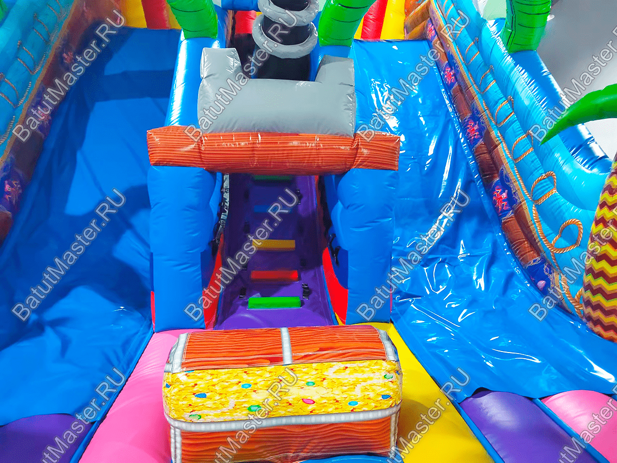 Внутри ребят ожидают другие надувные фигурки, а также горка, с которой можно долго кататься. Горка гладка, скользит хорошо. Забраться на неё будет достаточно просто – по рядом стоящим лестницам.