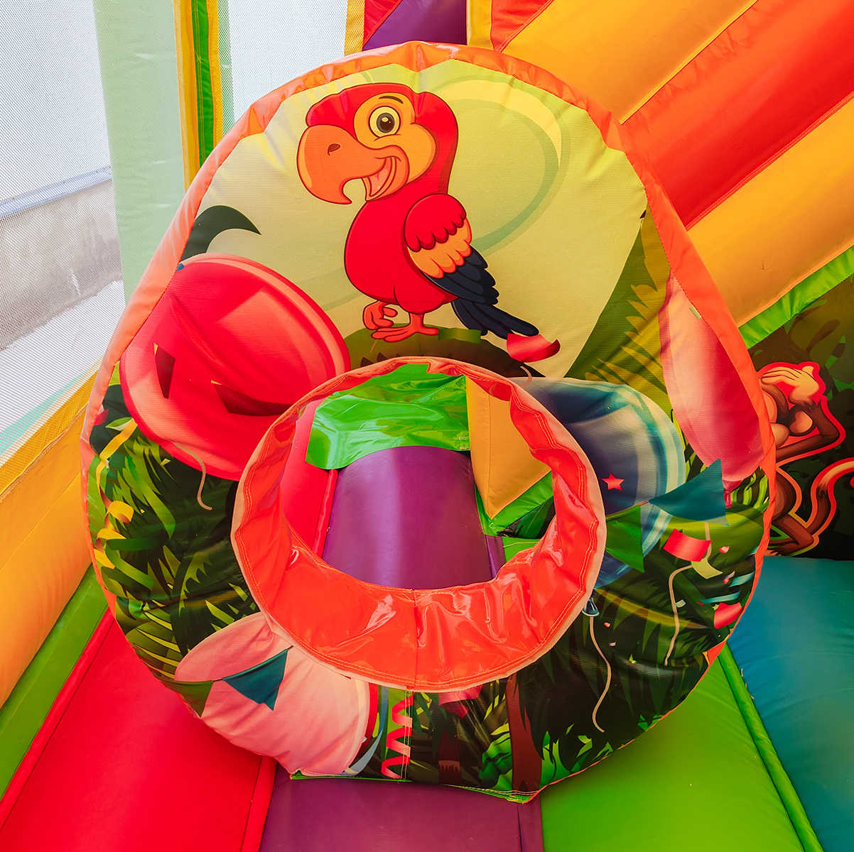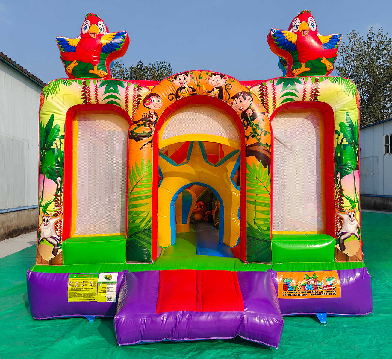 «Попугаи и друзья 2» — это не просто детская забава. Это инвестиция в прибыльный бизнес и в эмоциональные воспоминания для детей. Сочный дизайн с попугаями, джунглями и яркими игровыми элементами сразу выделяет аттракцион на фоне других. Формат "всё в одном" включает в себя батут, горку, препятствия и навес — что делает его идеальным решением для широкого спектра мероприятий.