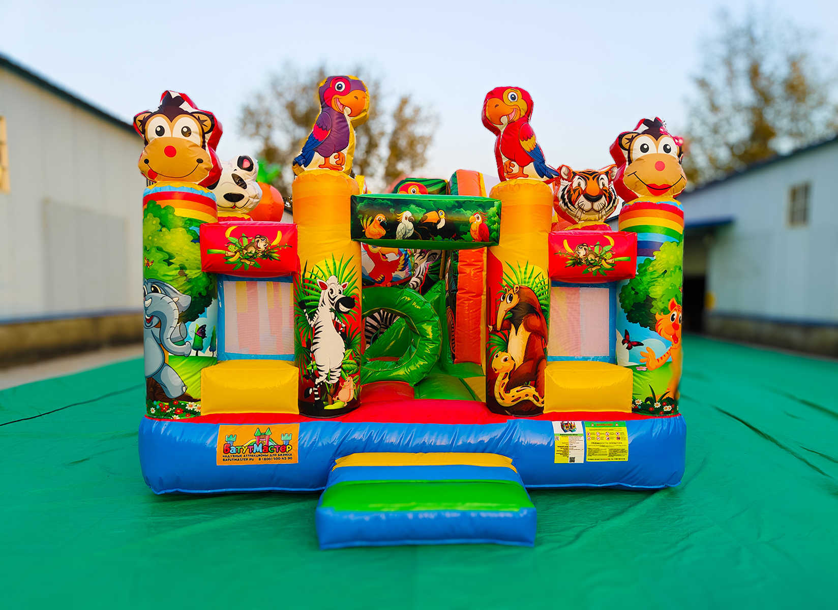 Высокие бортики, защитные сетки и мягкие игровые элементы обеспечивают максимальную безопасность во время прыжков, скатывания с горки и бега. Аттракцион устойчив даже при активной эксплуатации — как на солнце, так и при переменчивой погоде (допустимая температура эксплуатации от -15 до +65 °C.