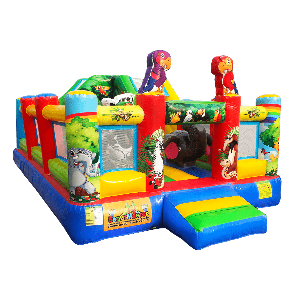 Яркий детский надувной батут «Попугайчики» - открытая площадка аттракцион из прочного ПВХ материала. Компания БатутМастер выпускает оборудование для бизнеса с возможностью модификации по желанию клиента.