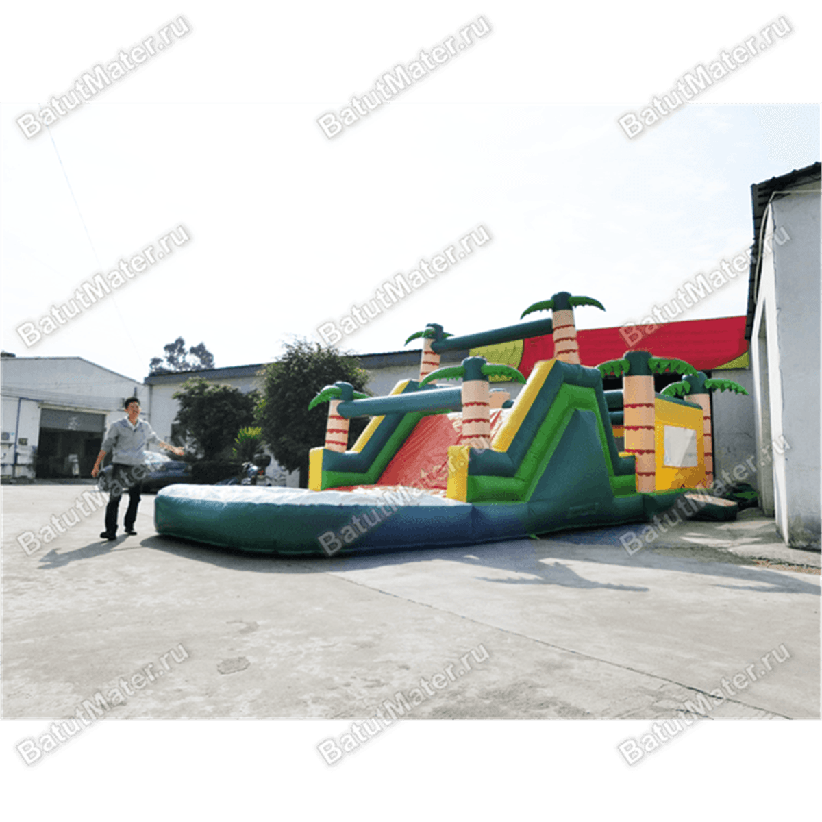 Каждый уровень аттракциона с двух сторон украшает мягкая, но все же, африканская пальма, всего их 8 штук. С внешней, уличной, стороны батут кажется полностью зеленым. На изготовление всех деталей и самой конструкции применяется исключительно качественная принт-краска, независимо от цены самого аттракциона. Это настоящая возможность попробовать себя в новом бизнесе и получить неплохой доход.