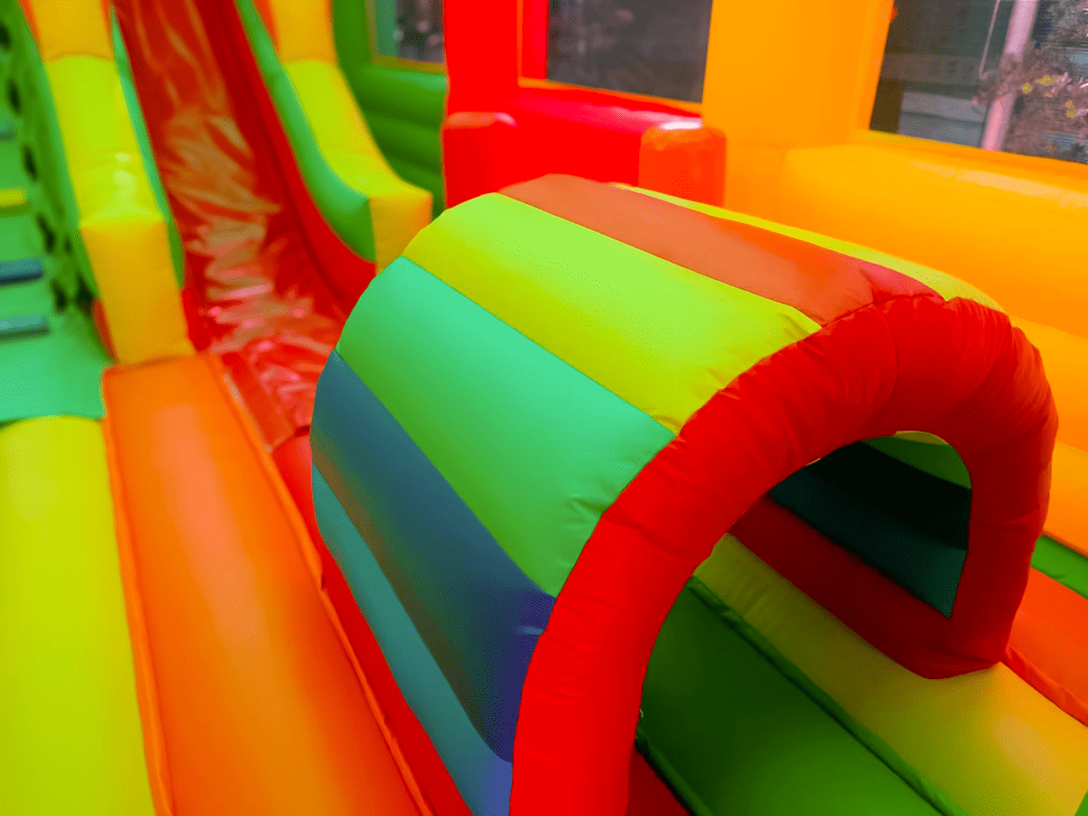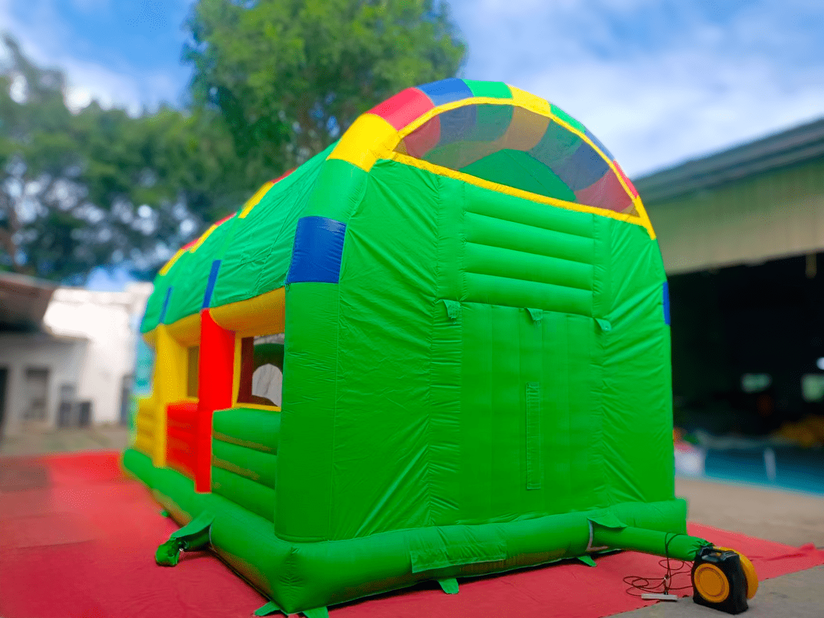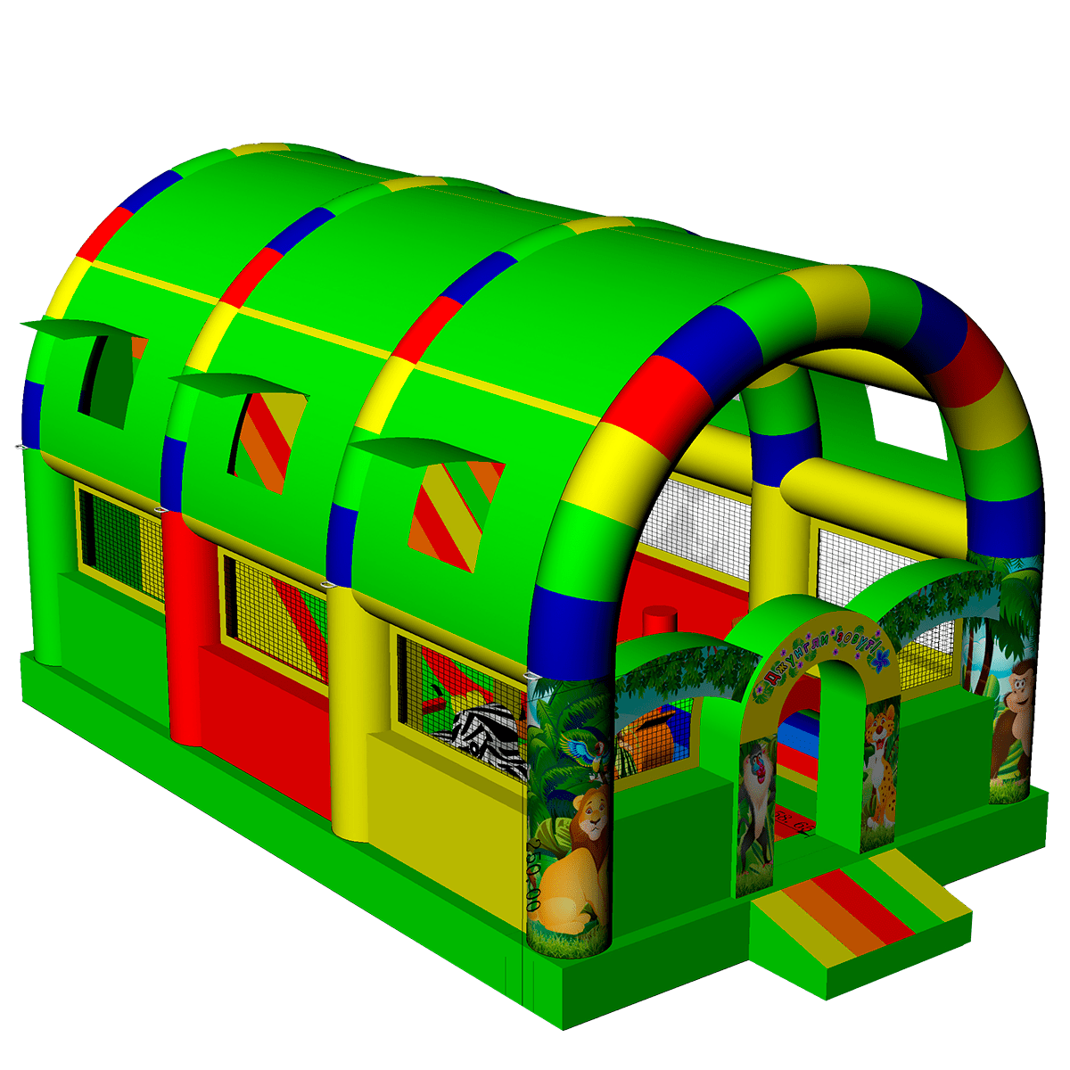 По всему периметру батута есть надувные высокие борта и окошки из прочной сетки, чтобы родители и дети видели друг друга. Вход надежно фиксируется молнией. У батута также есть крыша, благодаря которой на детей не будут попадать прямые солнечные лучи, а также ветер и дождь. На таком батуте дети смогут не только резвиться, но и еще улучшить физические показатели, а именно координацию движений, ловкость и выносливость.