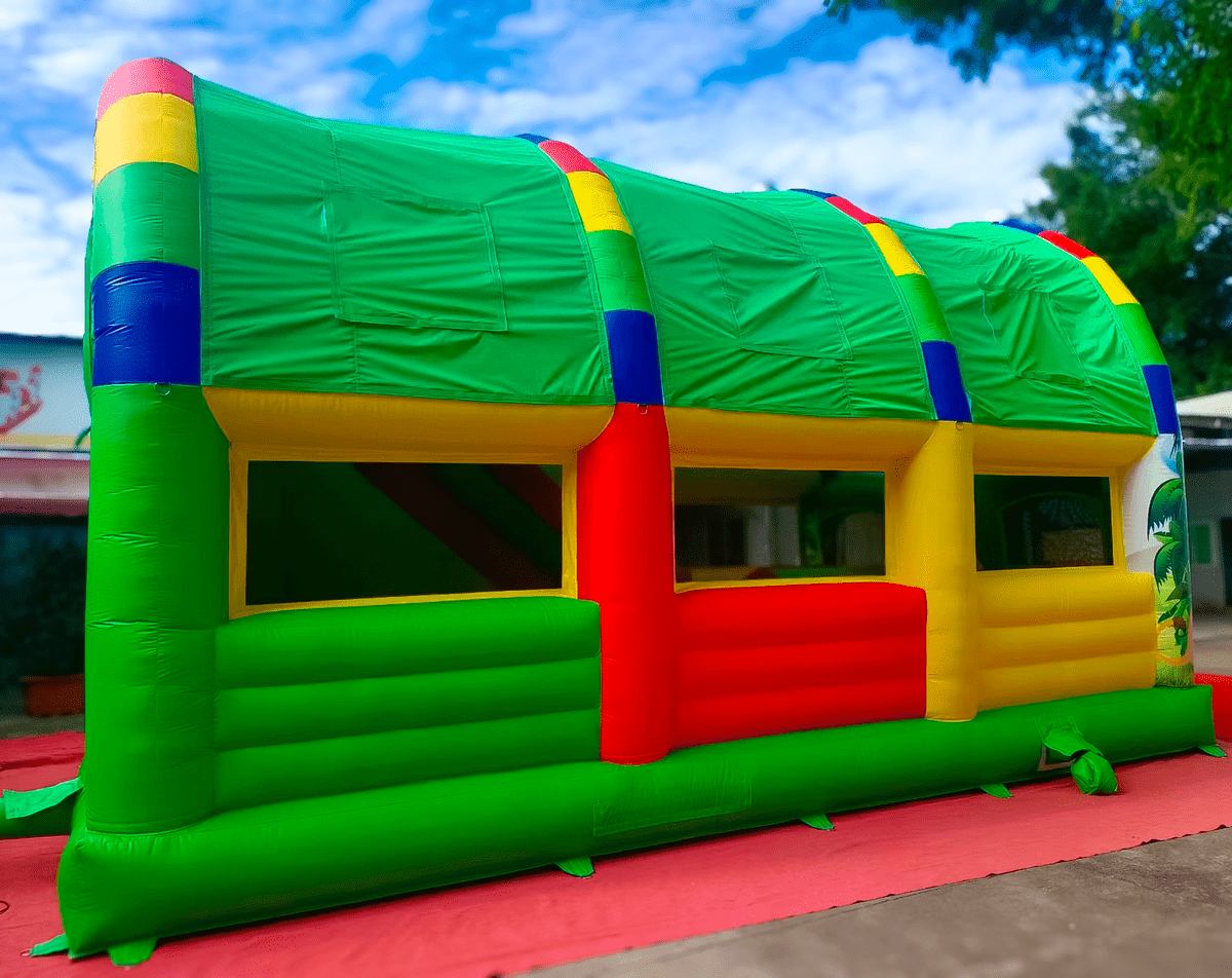 Надувной батут «Приключения в джунглях» вобрал в себя все то, что так нравится юным непоседам. Здесь можно прыгать, кувыркаться, бегать, прятаться и все это делать веселой компанией. Детям непременно понравятся его яркие цвета, а особенно рисунки тропических животных и птиц. Батут оснащен двумя горками, с которых дети так любят кататься с ветерком. Большое прыжковое поле позволит отталкиваться и подлетать вверх.