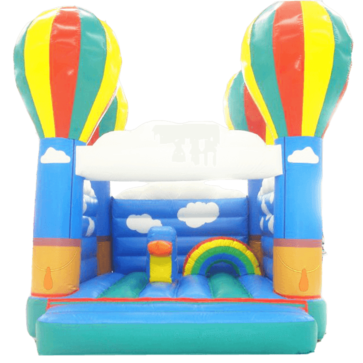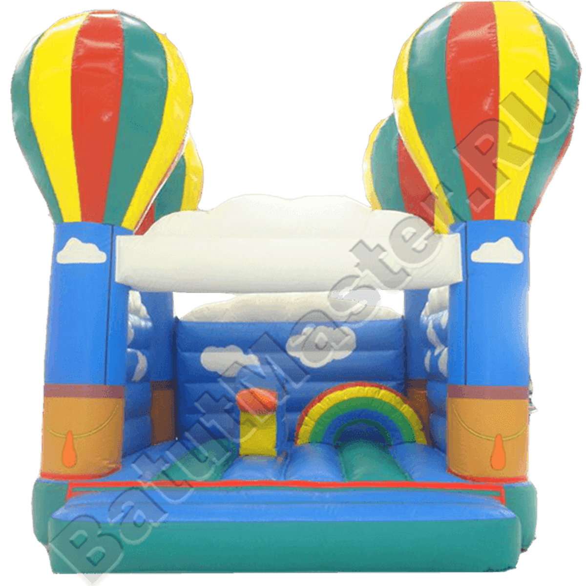 Красивая радуга и мягкие облака обязательно будут манить детей. Кто из них не мечтал полежать на облаке или совершить увлекательное путешествие на воздушном шаре? Батут состоит из площадки для прыжков и надувных игровых элементов. Это поможет детям разнообразить свое веселье. Родители и их детишки останутся довольными.