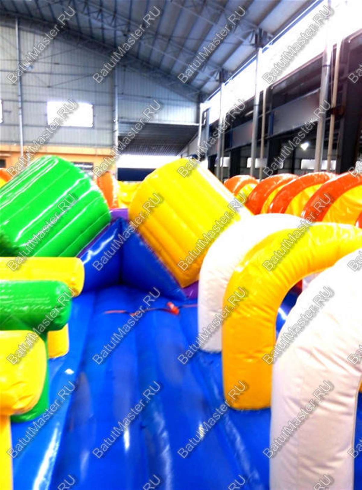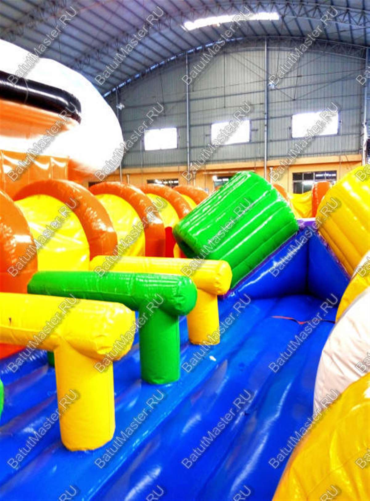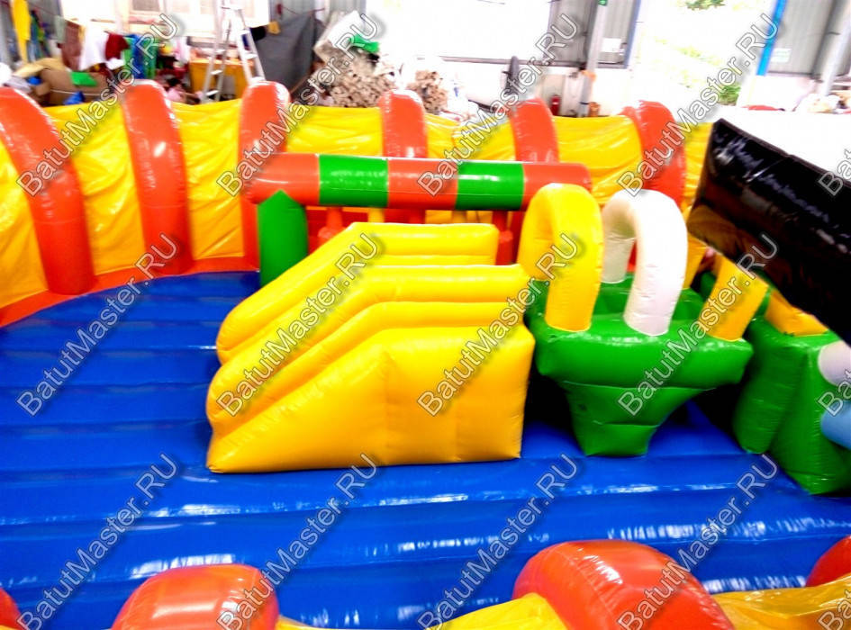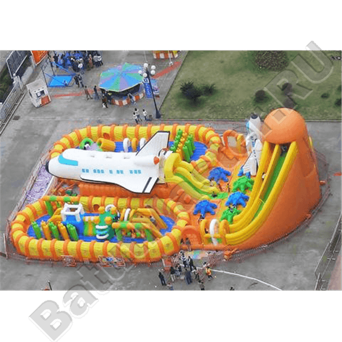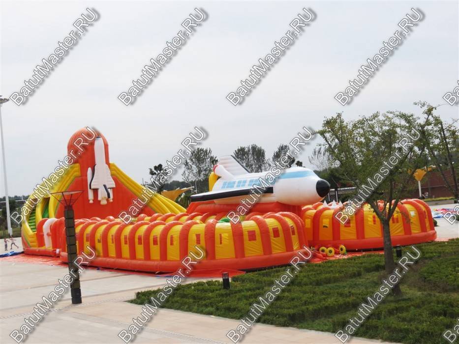 Представленный надувной батут их ПВХ – просторная площадка, напоминающая своим дизайном космодром. Многофункциональность коммерческого аттракциона заключается в том, что при размерах 30 на 20 м он делится на 3 основные площадки и каждая из них представлена множеством игровых фигур и препятствий.
