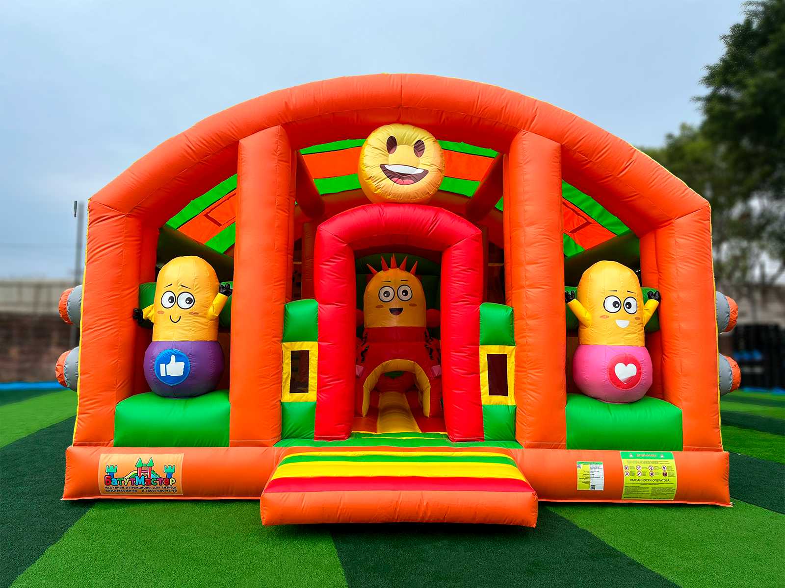 «Смайлики» — это не просто батут. Это мини-город радости, эмоций и активных приключений, оформленный в яркой тематике смайликов. Аттракцион размером 10x6x6 метров привлекает внимание с первых секунд, заряжая позитивом и даря детям настоящее удовольствие от игры. Батут идеально подходит для коммерческого использования на открытых и закрытых площадках: от городских парков до выставочных комплексов. Батут выполнен из прочного армированного ПВХ, рассчитанного на высокие нагрузки (до 800 кг и 17 детей одновременно). Благодаря крыше, батут можно эксплуатировать при любом уровне солнечной активности — дети будут защищены от перегрева, а бизнес — от простоев.