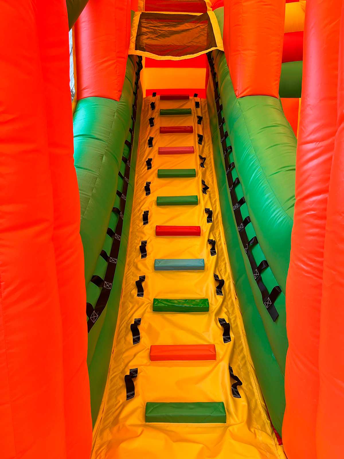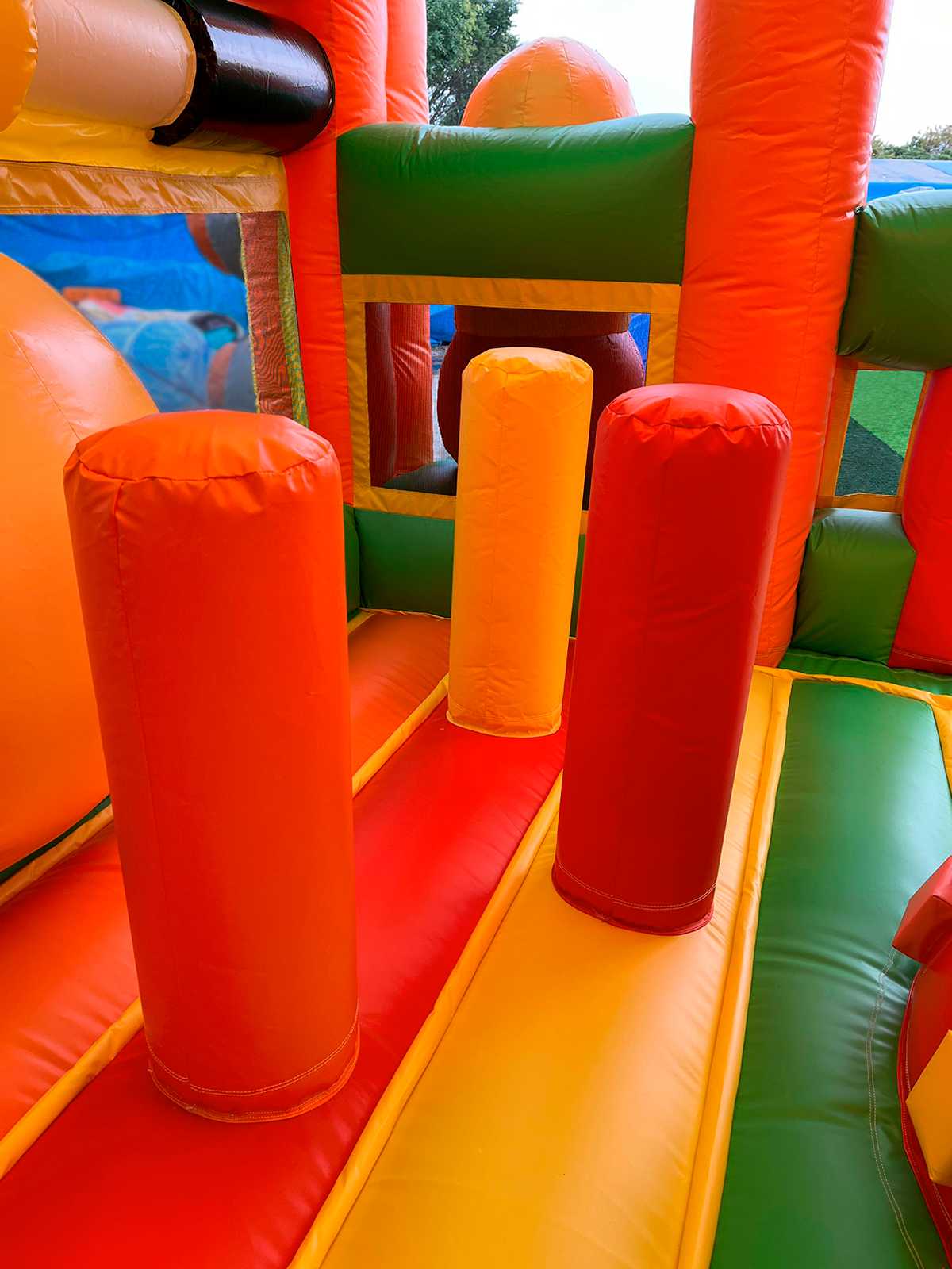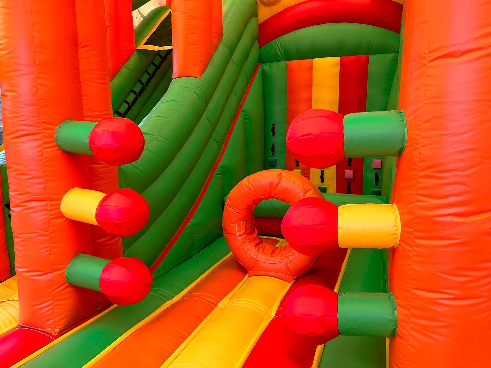 Надувной батут соответствует требованиям ТР ЕАЭС 038/2016 и ГОСТ Р 53487-2009. Аттракцион устойчив, надежно фиксируется к земле при помощи анкерных креплений. Плотный ПВХ толщиной 0,55 мм и плотностью 690 г/м² обеспечивает устойчивость к износу и погодным условиям.