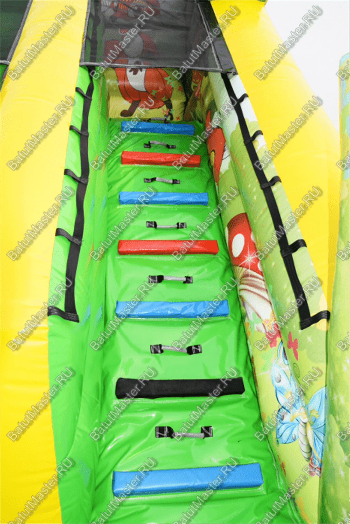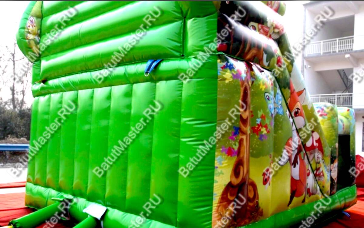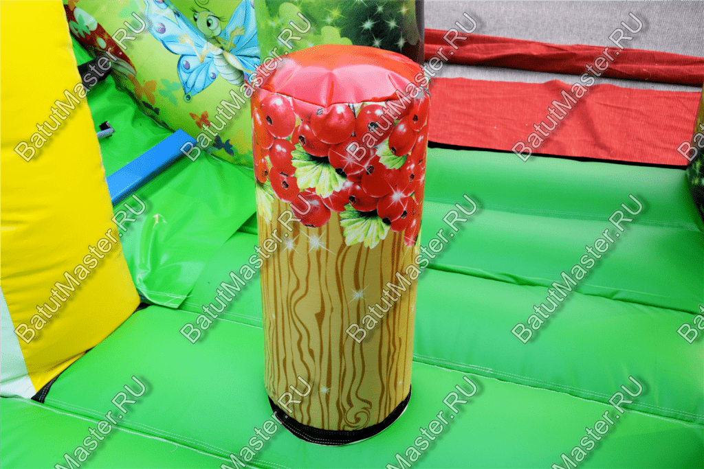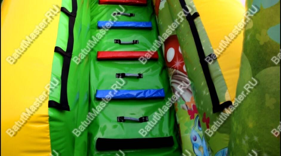 Для отдыха предусмотрена высокая горка с широким спуском, имеются здесь горизонтальные и вертикальные столбики, служащие препятствиями для бега и прыжков. Каждый ребенок зарядится положительным настроением в комфортабельных условиях: от ветра защитят высокие борта, а сетка с мелкой ячейкой обеспечит безопасность, при этом наблюдать за детьми по-прежнему удобно.