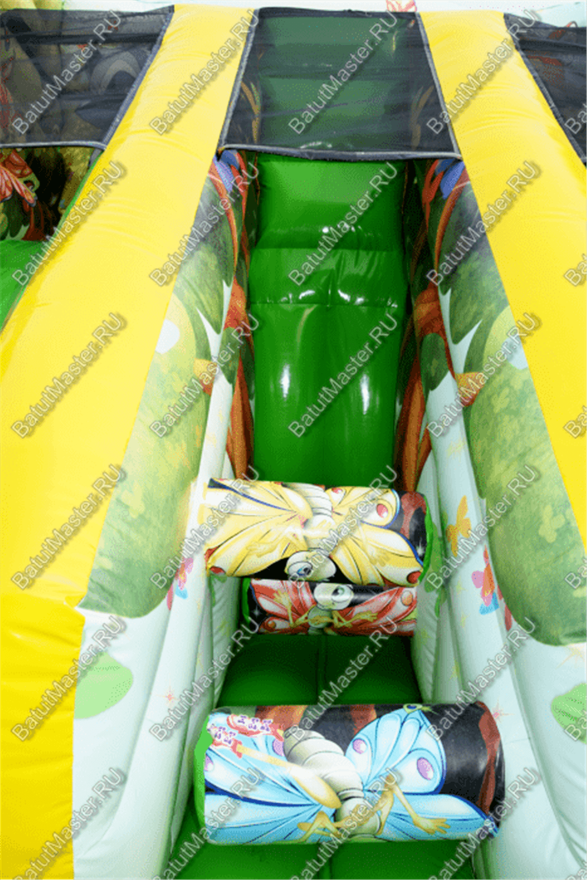 Входная арка оборудована сеткой с молнией-змейкой, которая дает возможность контролировать поток детей и создавать внутри батута свой микроклимат. Аттракцион уже в наличии на нашем складе и ожидает дальнейшей транспортировки.