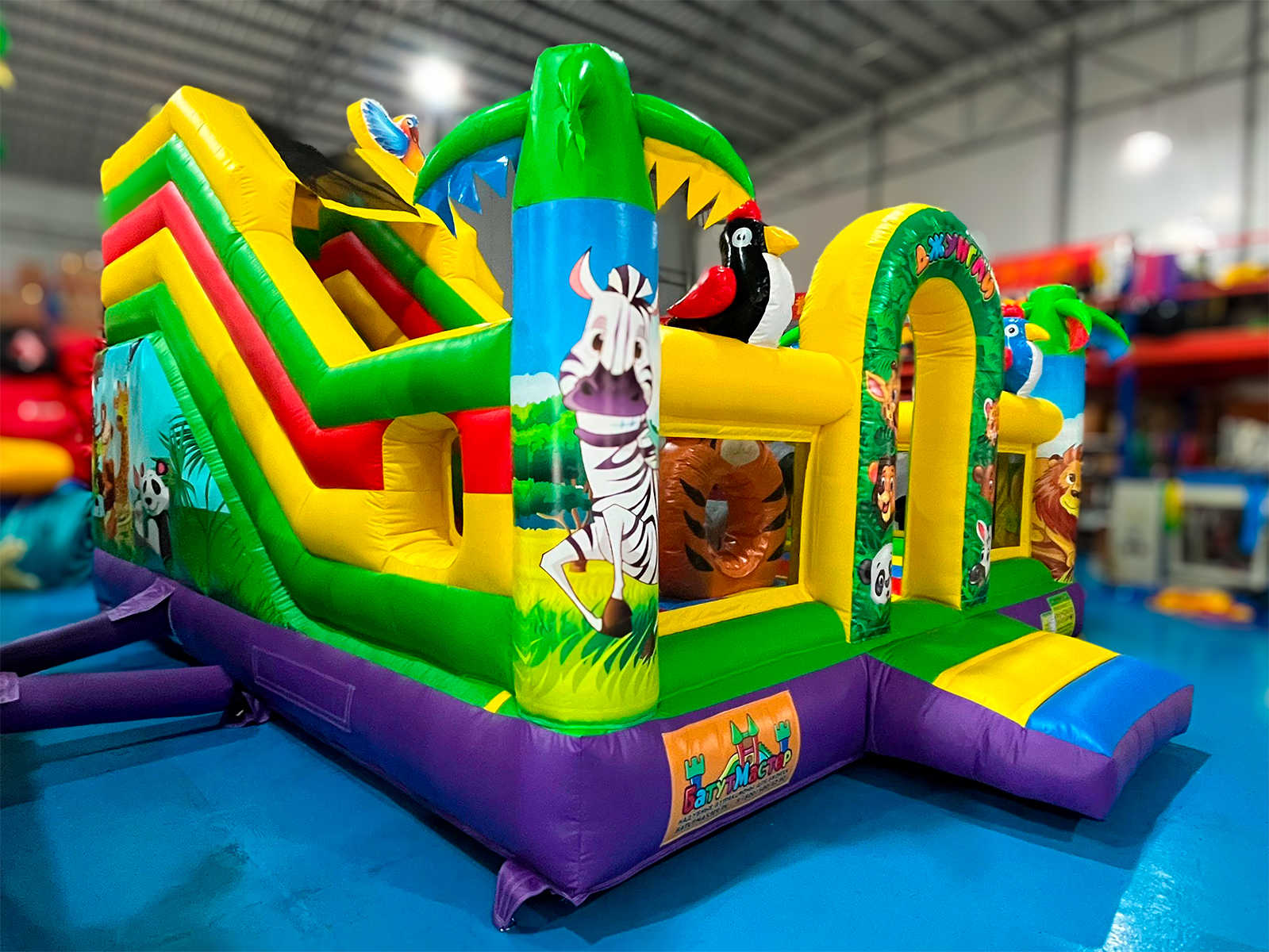 Коммерческий надувной батут «Сафари-джунгли 2» изготовлен из высококачественного армированного ПВХ с плотностью 690 г/м², что обеспечивает прочность и надёжность при постоянной эксплуатации. Материалы прошли все необходимые испытания и соответствуют международным стандартам безопасности.