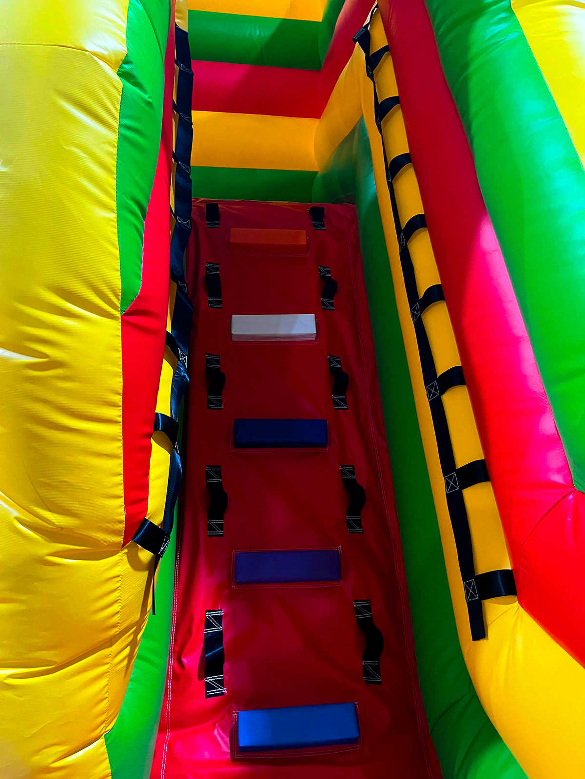 Аттракцион спроектирован с учетом максимальной безопасности для детей. Все элементы батута, такие как арки, столбики и горка, оснащены безопасными ограничителями и зонами для входа и выхода, что предотвращает несчастные случаи. Батут может выдерживать вес до 400 кг и вмещать до 9 человек одновременно, что делает его отличным выбором для массовых мероприятий, парков, торговых центров или развлекательных площадок.
