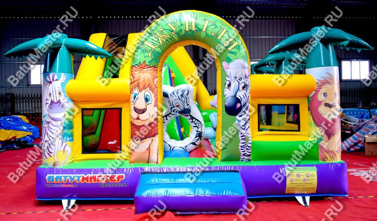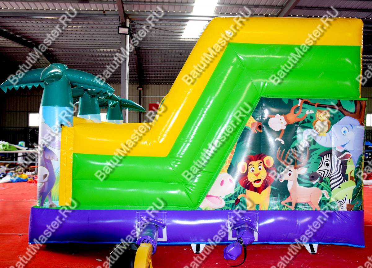 Внутри деток будут ожидать надувные фигуры слоника, зебры и жирафа. С ними можно отлично повеселиться. Также ребята, которые не любят просто прыгать на батуте, могут покататься с горки. Причём, забраться на неё можно двумя способами: один достаточно простой, а вот второй требует некоторой сноровки.