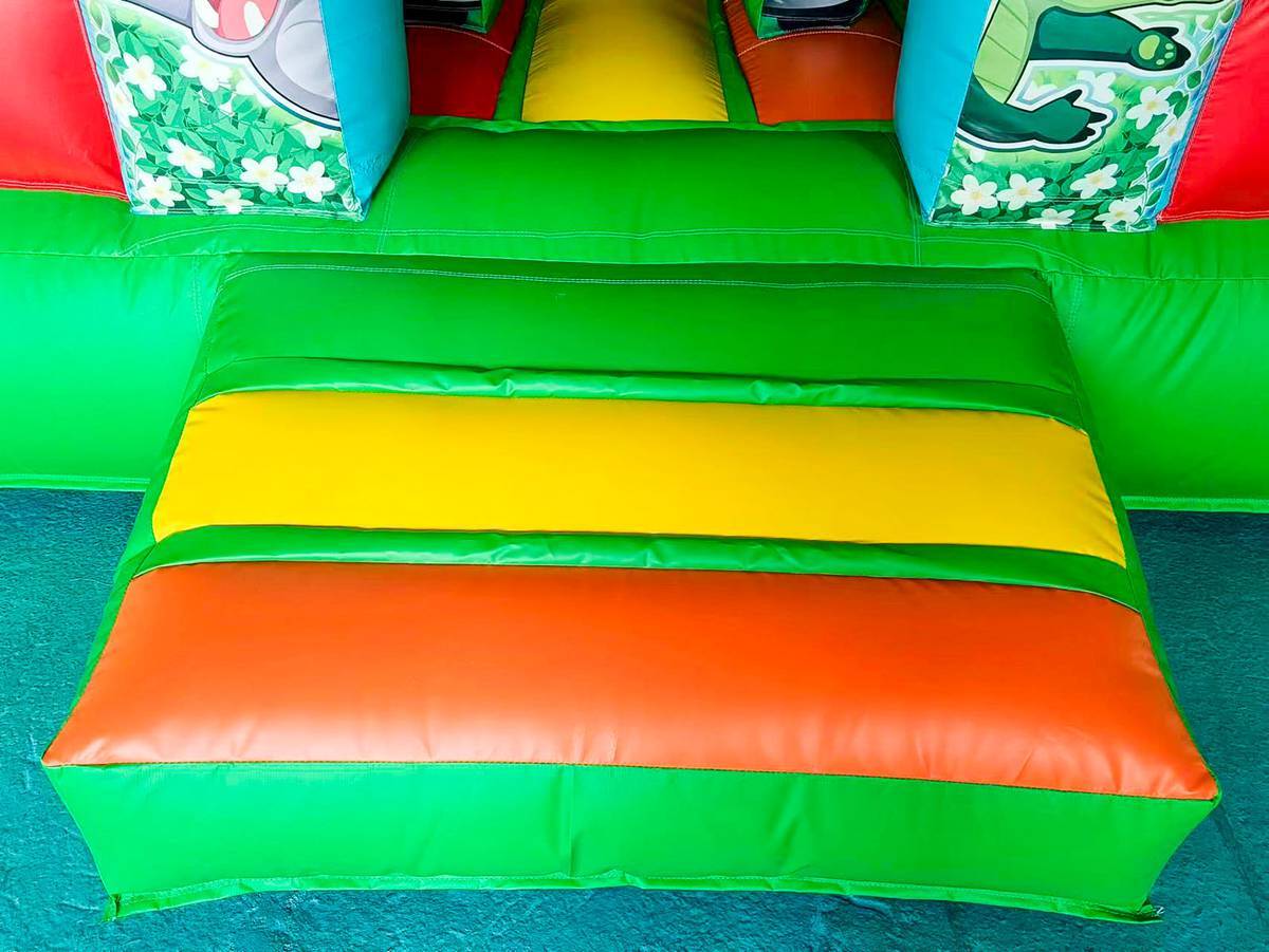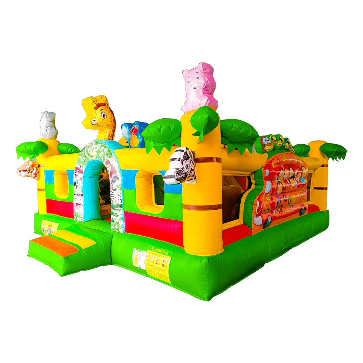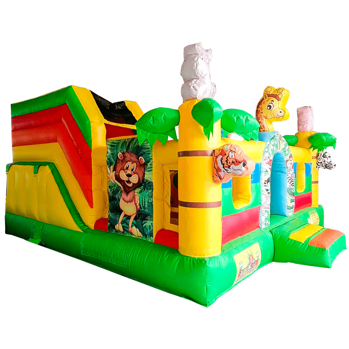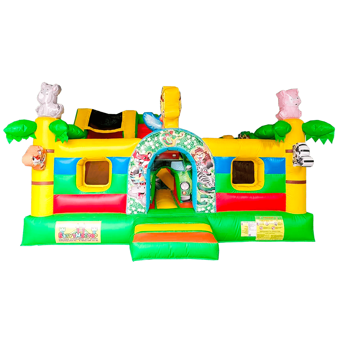 Батут-горка «Сафари-экскурсия Ультра» — это не просто развлекательный батут, а полноценный центр детского веселья. Его яркий дизайн и тематическое оформление с милыми животными, зелёной листвой и арками погружают детей в мир джунглей и весёлых сафари. Такой батут легко станет главным объектом на любом празднике, фестивале, в торговом центре или на детской площадке.