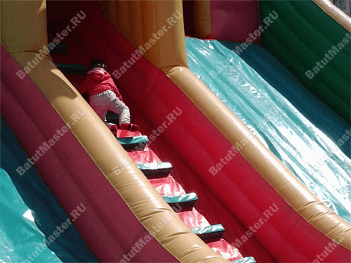 Вход украшают надувные животные, пальмы, а также рисунки, имитирующие поляну в тропическом парке. Коммерческий батут полностью надувной, не имеет жестких элементов. Спереди имеются окошки из прочной сетки, чтобы родители видели, как играют дети. Такой игровой комплекс позволит юным непоседам весело провести время. Он отличается не только великолепным внешним видом, но и еще функциональностью.