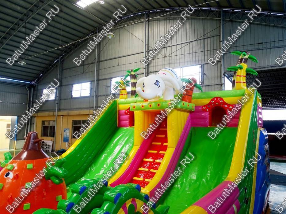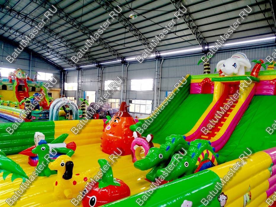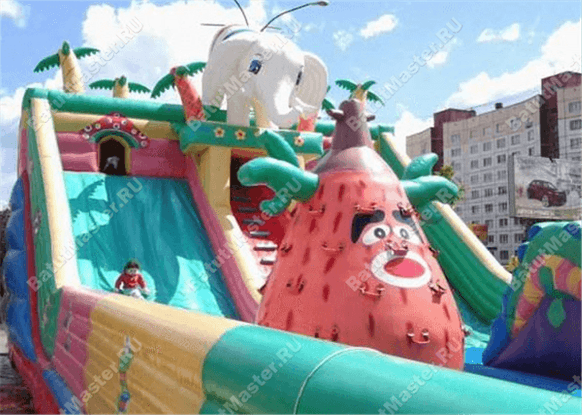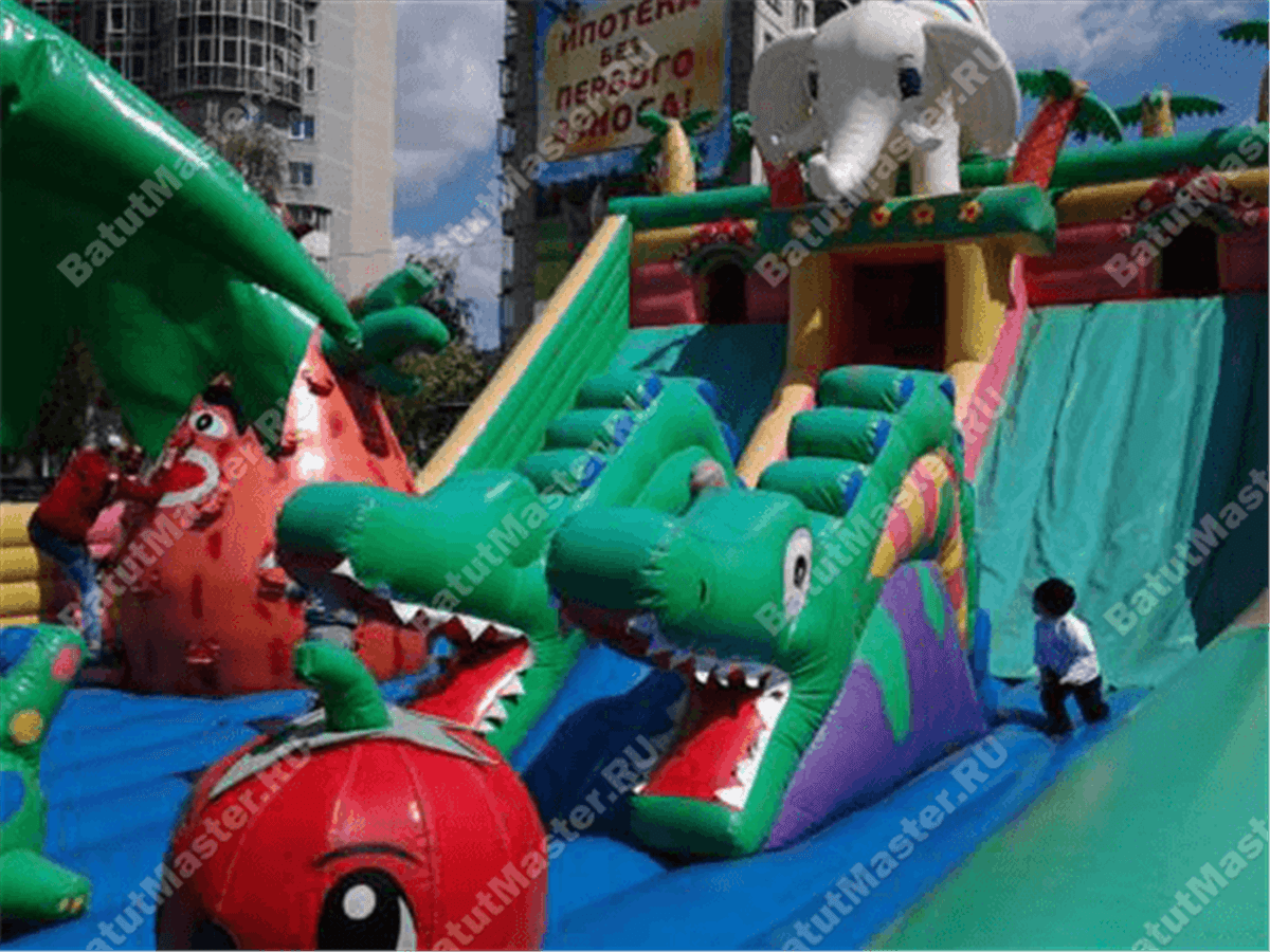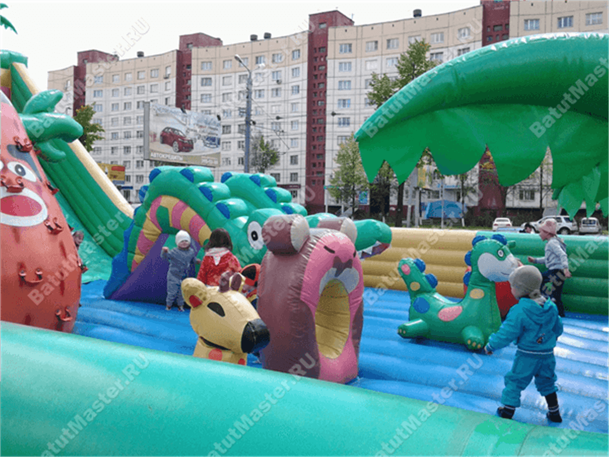 Мальчишек и девчонок приветствует аттракцион сафари парк. Здесь есть все, чтобы не просто понравиться, но и захотеть вернуться снова и снова. Коммерческий надувной батут для бизнеса самым лучшим образом воздействует на деток разного возраста, а именно развивает моторику, координацию, укрепляет мышцы и в целом растущий организм. Комплекс яркий, современный и не может не радовать.