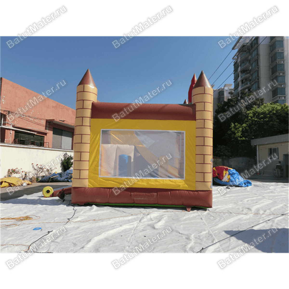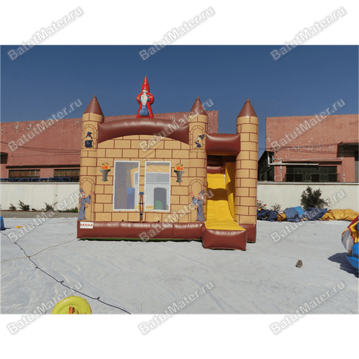 Этот красочный батут будто из сказки про Гарри Поттера. Повсюду изображены добрые волшебники, факелы, да и сам домик (то есть место для прыжков и для бега) уж очень напоминает средневековую крепость. Детям так хочется верить в волшебство, поэтому они всегда стремятся быть к нему поближе. А такой замок обязательно приворожит их только одним видом. Родители будут в восторге от того, что сумели подарить своему чаду хотя бы несколько минут сказки.
