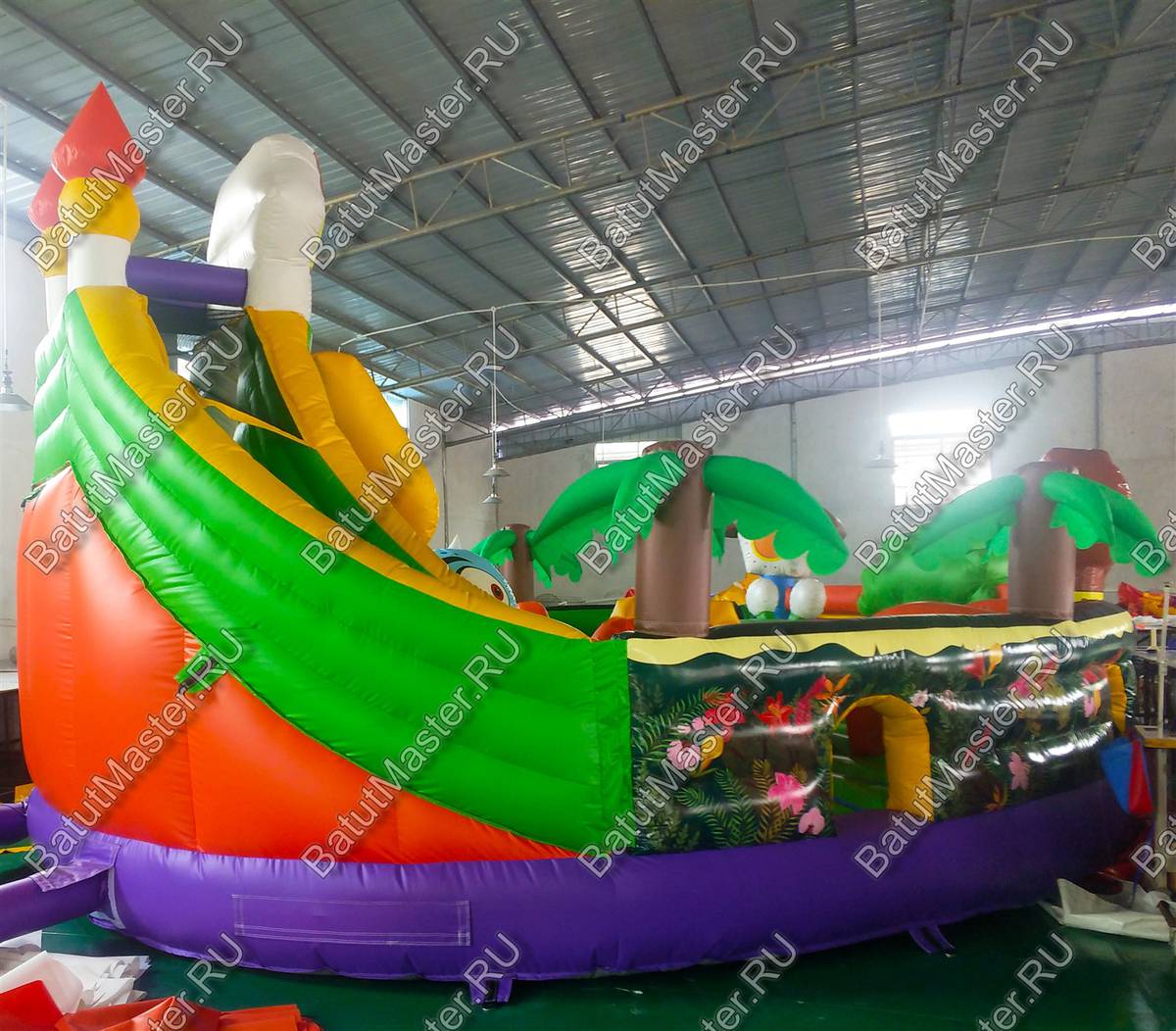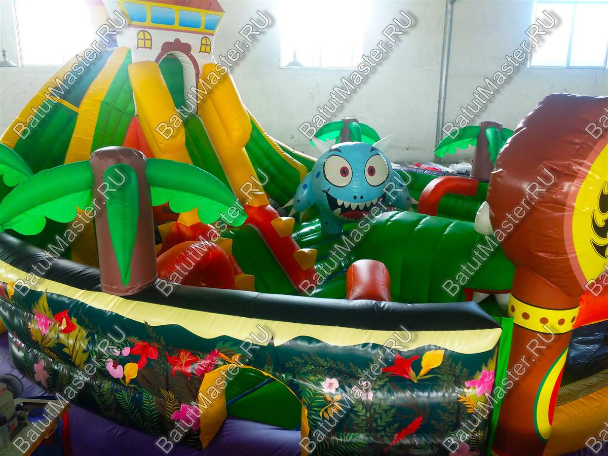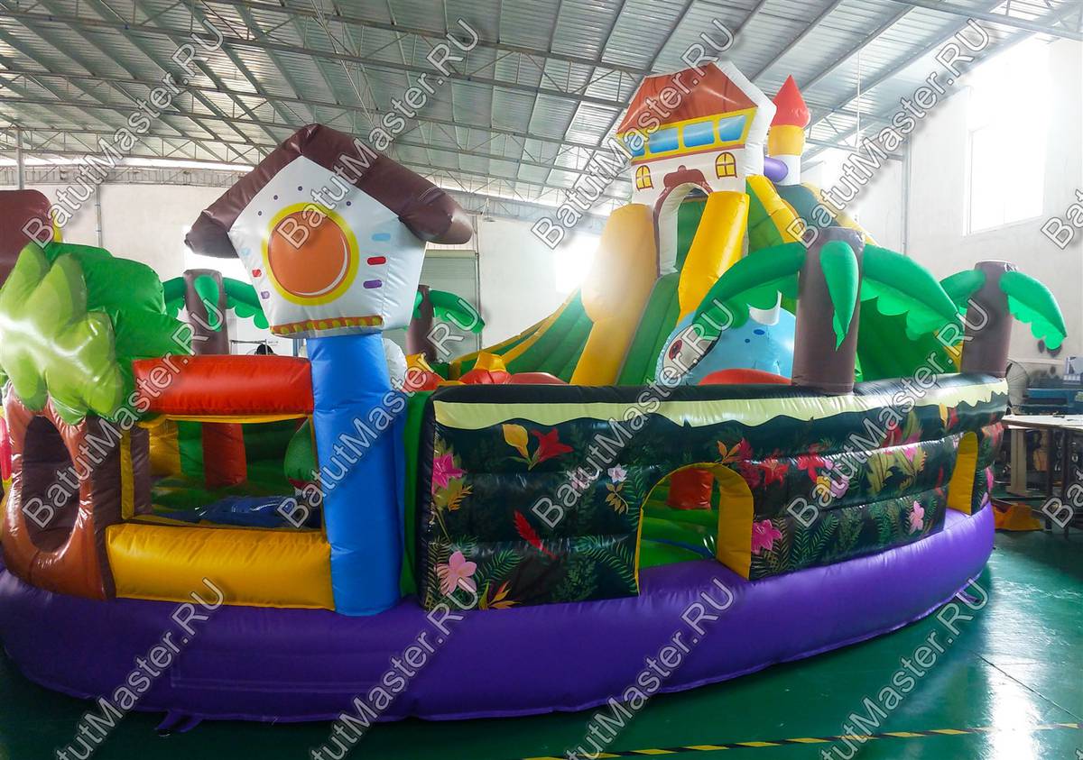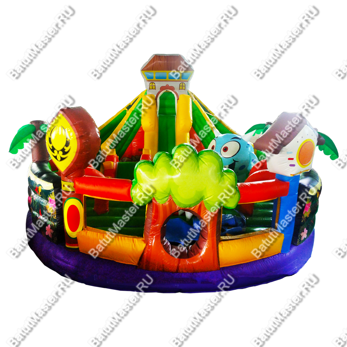Небольшой, но очень функциональный надувной батут поразит маленьких первооткрывателей своей яркостью и множеством интересных деталей. Здесь интересно будет играть даже малышам, ведь для них есть маленькая горка, тоннель, надувные кольца, фигуры в виде рыб и животных. Для детей постарше есть несколько горок побольше, большая прыжковая зона, надувные фигуры животных, а также домик наверху горки.