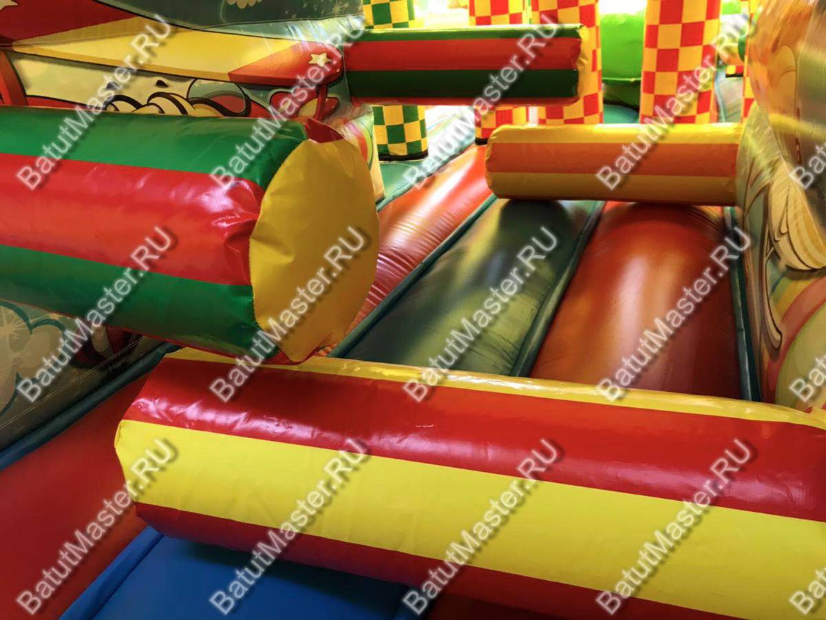 Борта комплекса достаточно высоки, чтобы не допустить выпадения малышей во время активных игр, даже при залезании на вершины надувных снарядов, что обеспечивает безопасность деток.