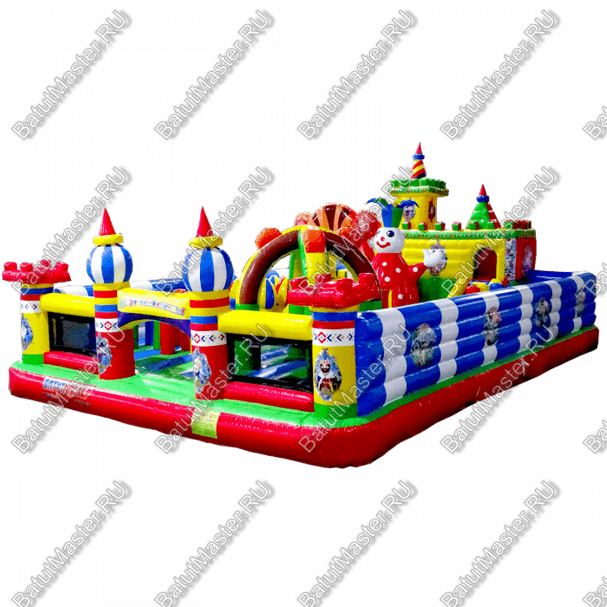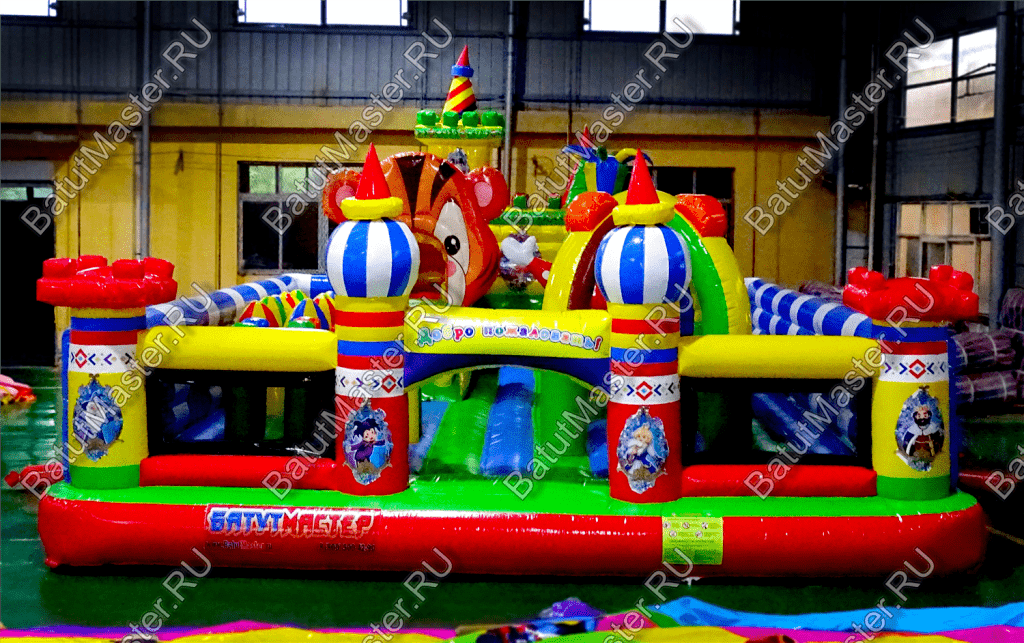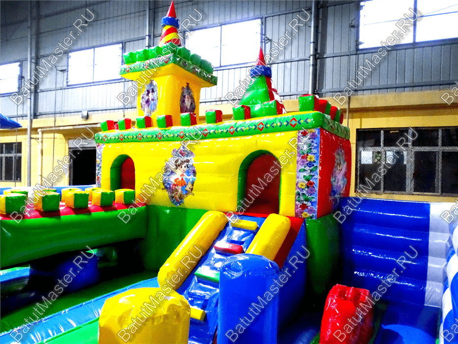 Коммерческий многофункциональный батут «Сказочный дворец» - это габаритный комплекс с надувным замком-домиком и массой надувных дополнений и аксессуаров.