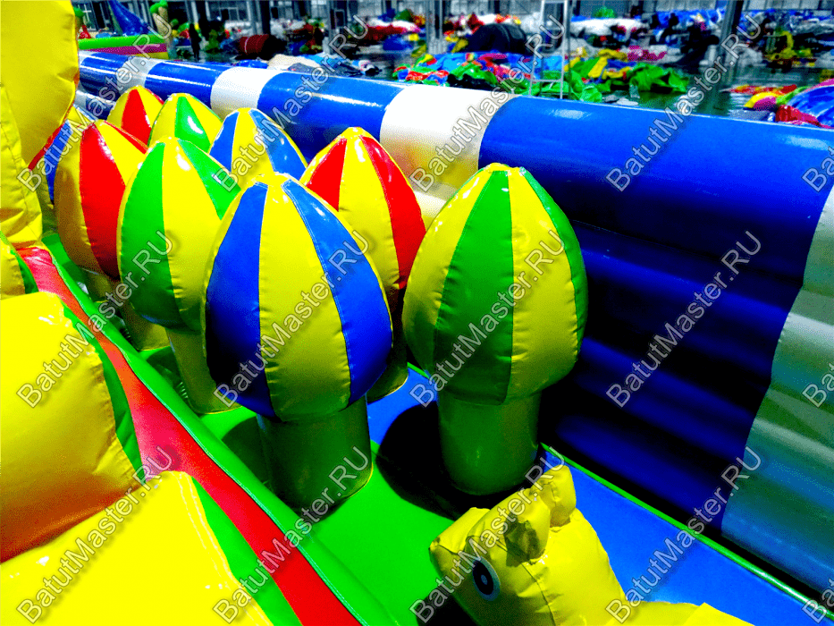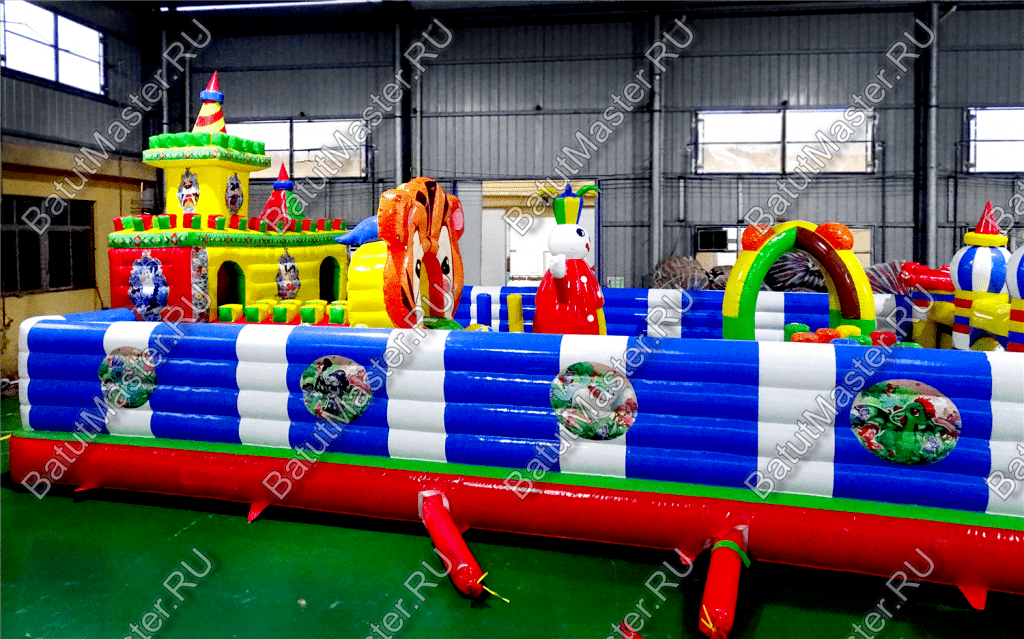 Несмотря на многообразие используемых элементов и типов развлечений, это недорогой батут, что позволяет приобрести его для оформления детской площадки во дворе, комплектации спортивного уголка в детском саду или школе. Удачная форма надувного комплекса и практичность исполнения данного аттракциона делают его привлекательным для коммерческого и личного использования.