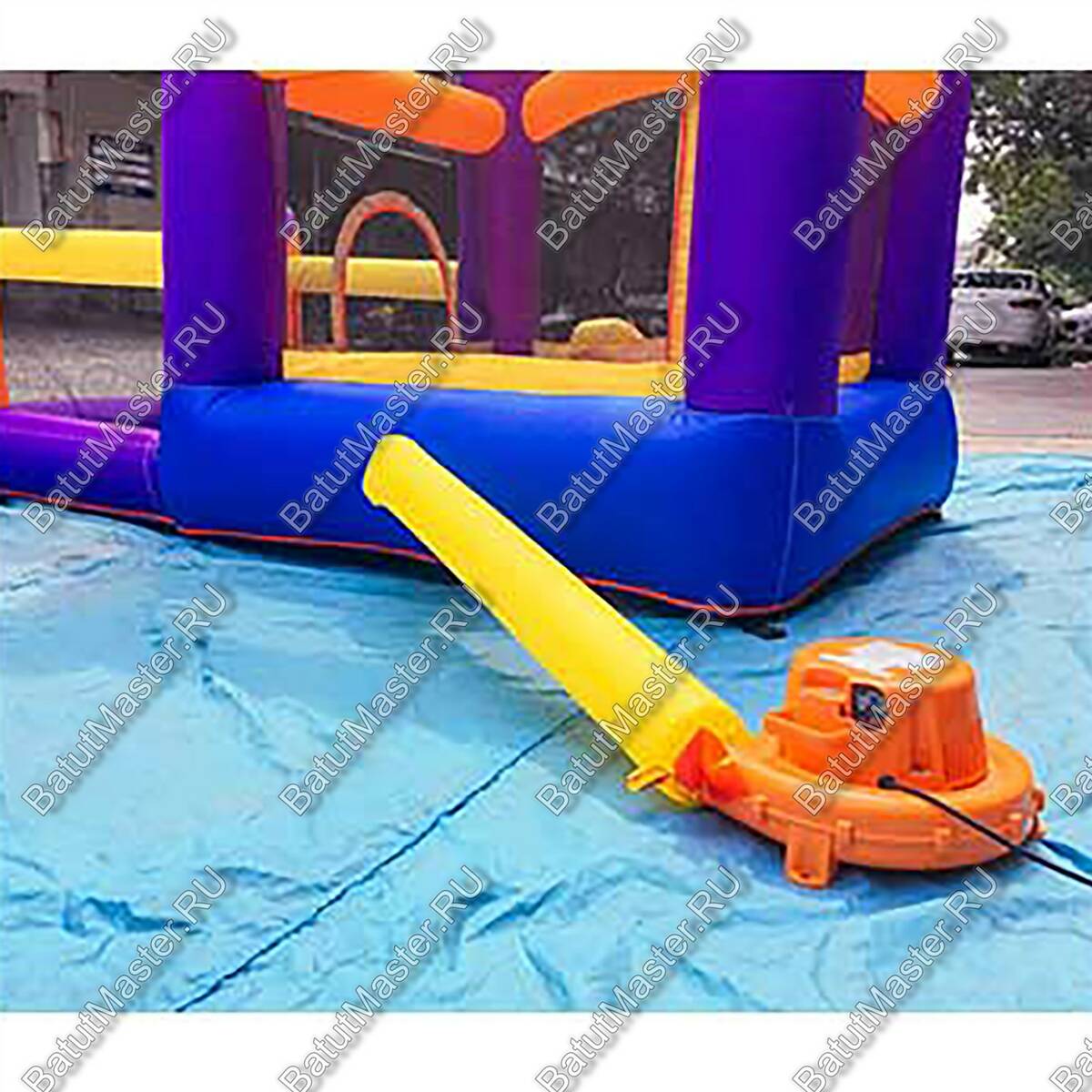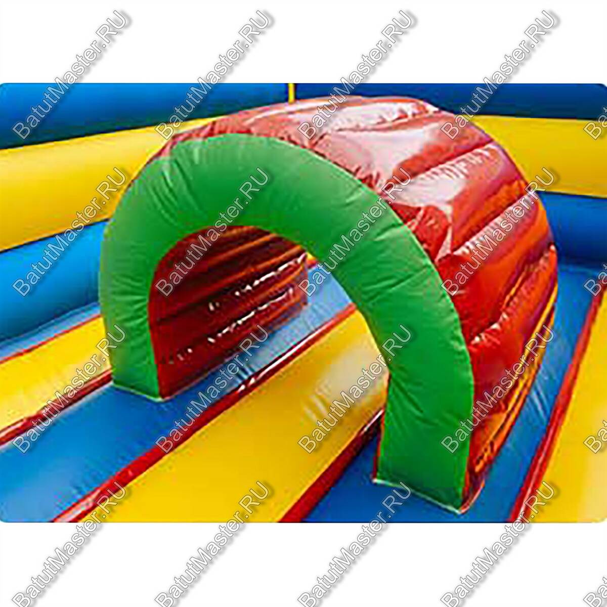 Внутри детей ожидают просторная площадка для прыжков, а также некоторые надувные элементы, с которыми можно поиграть. Батут является закрытого типа, поскольку со всех сторон имеет надувные стенки. Это обеспечивает безопасность для детей.