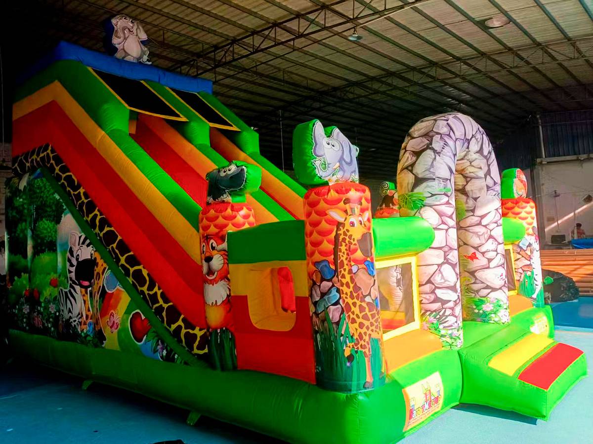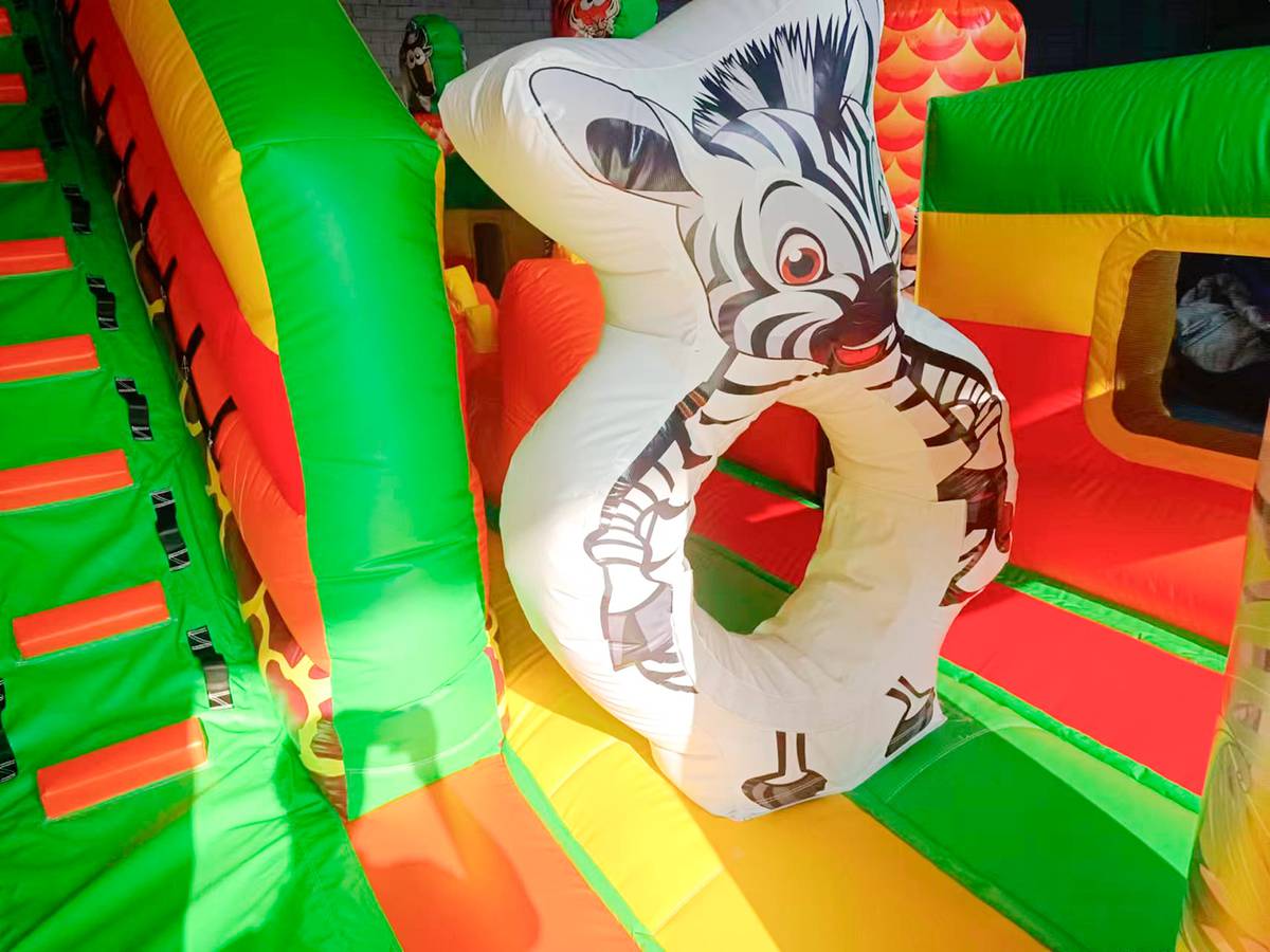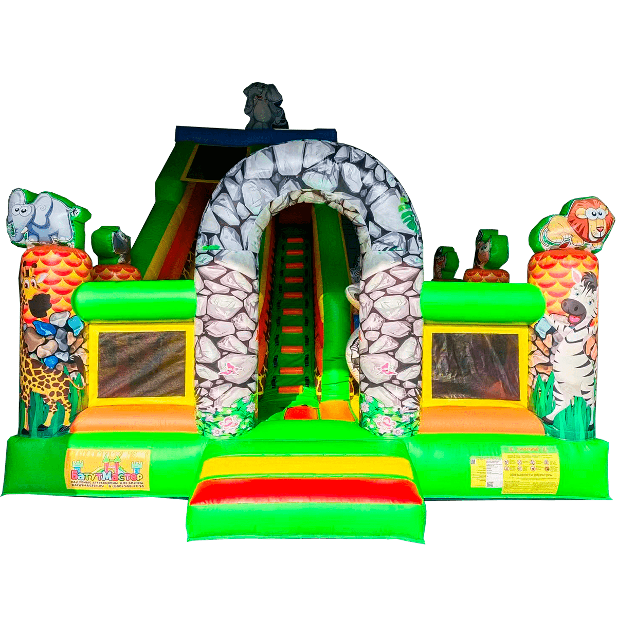 Небольшой, но достаточно функциональный комплекс с наполнением из ярких модулей и современных элементов ждет юных непосед. Оснащен небольшой горкой среднего размера, тоннелем, мягкими столбцами, а также модулями в виде животных, обитающих в тропиках. На них можно забираться и потом весело падать, так повторять из раза в раз. И это еще не все - у надувного батута есть большая зона для прыжков. Надувные слоники, жирафы, а также различные элементы в виде растений и водорослей делают комплекс более тематичным и радужным. Коммерческий батут потрясающего дизайна приведет ребенка в восторг. Все это напоминает сказочный мир, где все кругом призывает к веселью и приключениям. Яркий цвет и современное оснащение подарит только радость. Здесь достаточно места для того, чтобы дети смогли придумать подвижные игры. Не обошлось здесь и без большой прыжковой зоны, которая так нравится детям. Ведь отталкиваться и подлетать вверх это возможность ощутить захватывающие эмоции. Дети непременно оценят данную модель игрового комплекса, так как здесь все придумано для того, чтобы можно было весело проводить время. Предназначен для бизнеса. Может заменить полноценную площадку для игр в развлекательном центре.