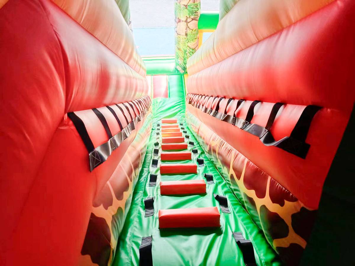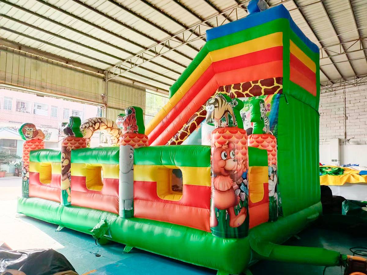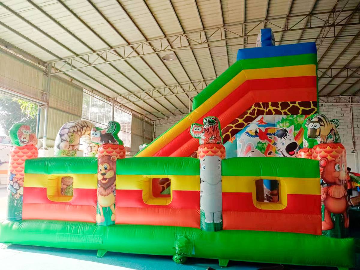 Небольшой, но достаточно функциональный комплекс с наполнением из ярких модулей и современных элементов ждет юных непосед. Оснащен небольшой горкой среднего размера, тоннелем, мягкими столбцами, а также модулями в виде животных, обитающих в тропиках. На них можно забираться и потом весело падать, так повторять из раза в раз. И это еще не все - у надувного батута есть большая зона для прыжков. Надувные слоники, жирафы, а также различные элементы в виде растений и водорослей делают комплекс более тематичным и радужным. Коммерческий батут потрясающего дизайна приведет ребенка в восторг. Все это напоминает сказочный мир, где все кругом призывает к веселью и приключениям. Яркий цвет и современное оснащение подарит только радость. Здесь достаточно места для того, чтобы дети смогли придумать подвижные игры. Не обошлось здесь и без большой прыжковой зоны, которая так нравится детям. Ведь отталкиваться и подлетать вверх это возможность ощутить захватывающие эмоции. Дети непременно оценят данную модель игрового комплекса, так как здесь все придумано для того, чтобы можно было весело проводить время. Предназначен для бизнеса. Может заменить полноценную площадку для игр в развлекательном центре.