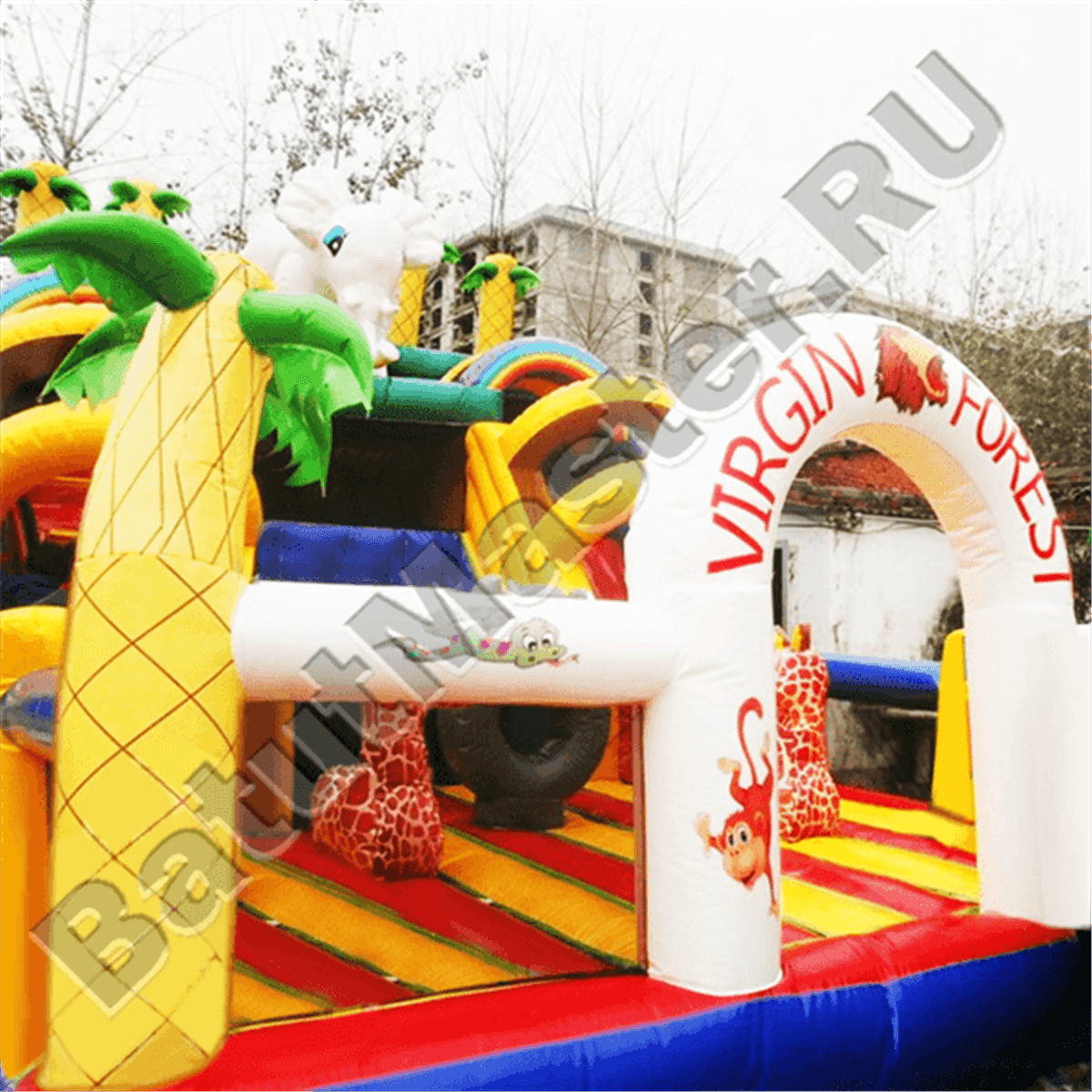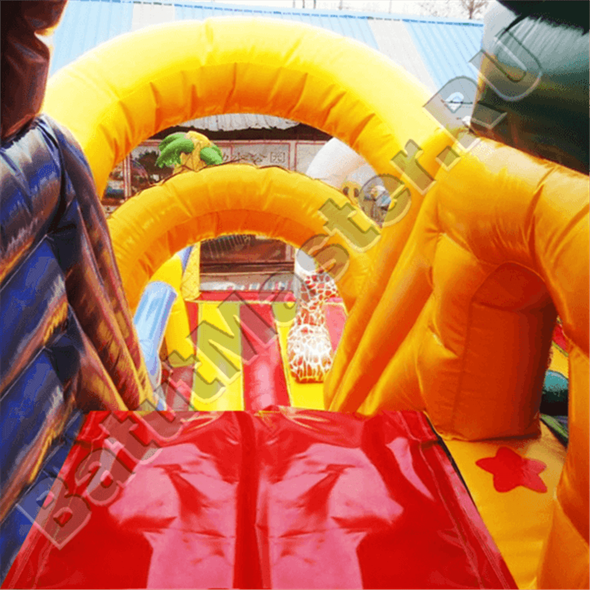 Попадая внутрь, можно оценить обширную свободную зону – здесь много места для прыжков и игры. По всей поверхности равномерно распределены фигурки зверей, которые служат спортивными снарядами и преградами для бега, к тому же придают батуту особого стиля.