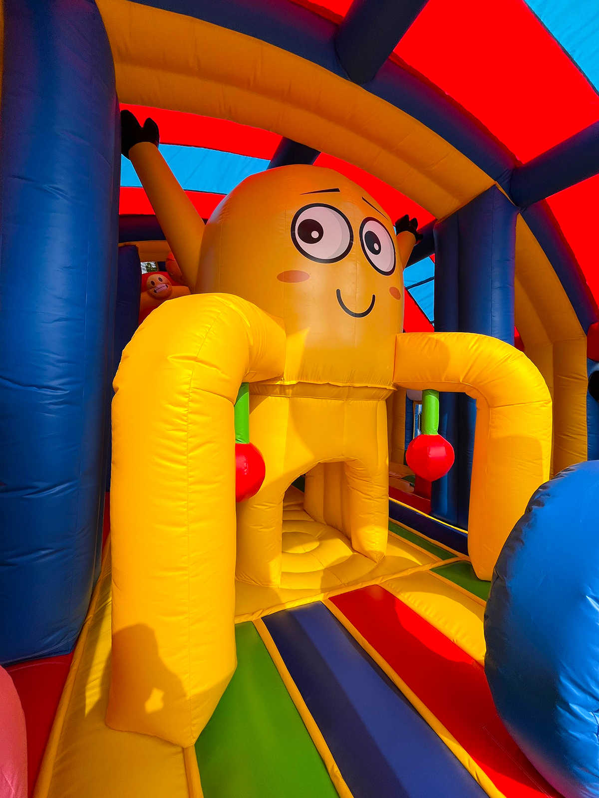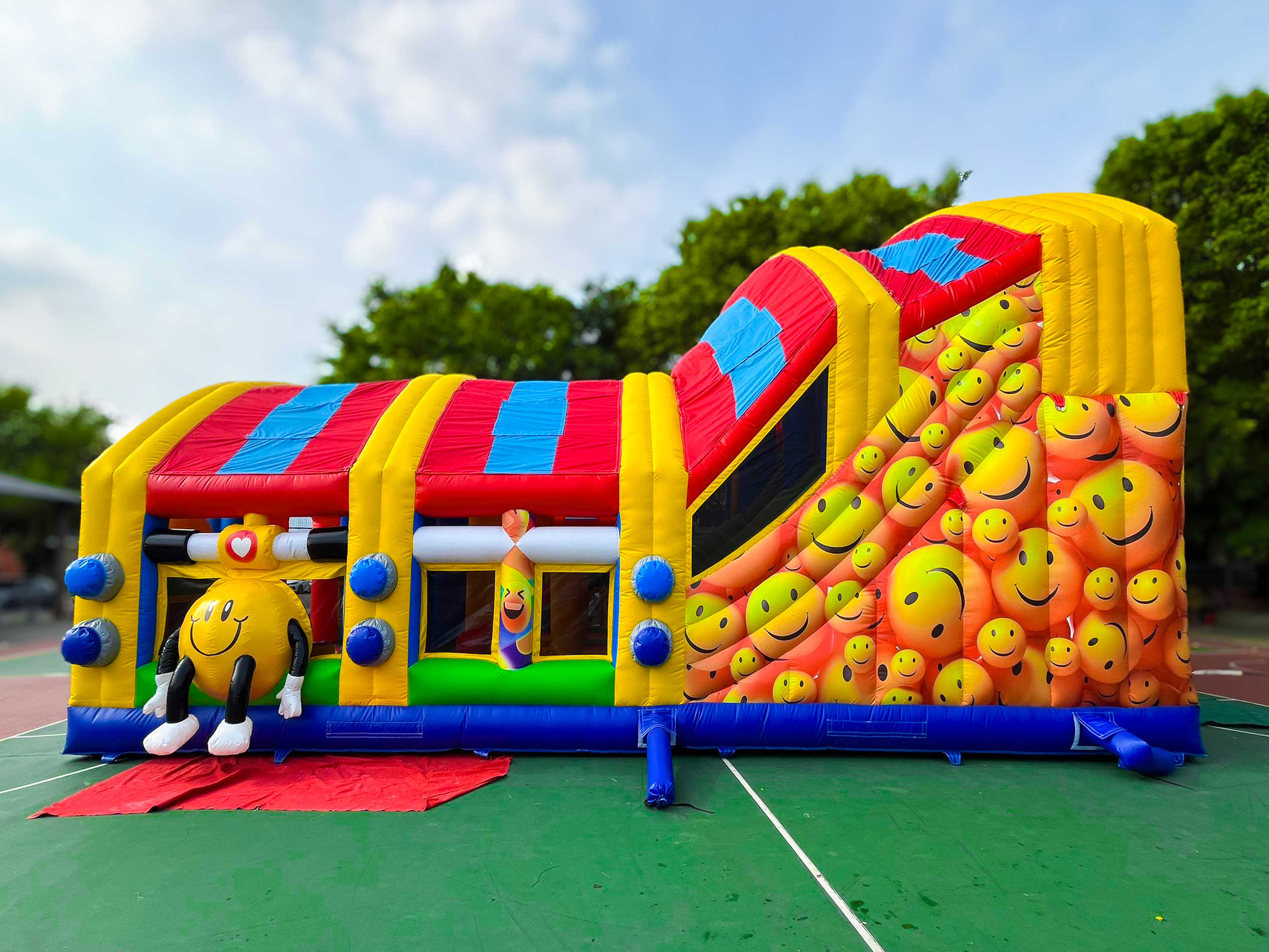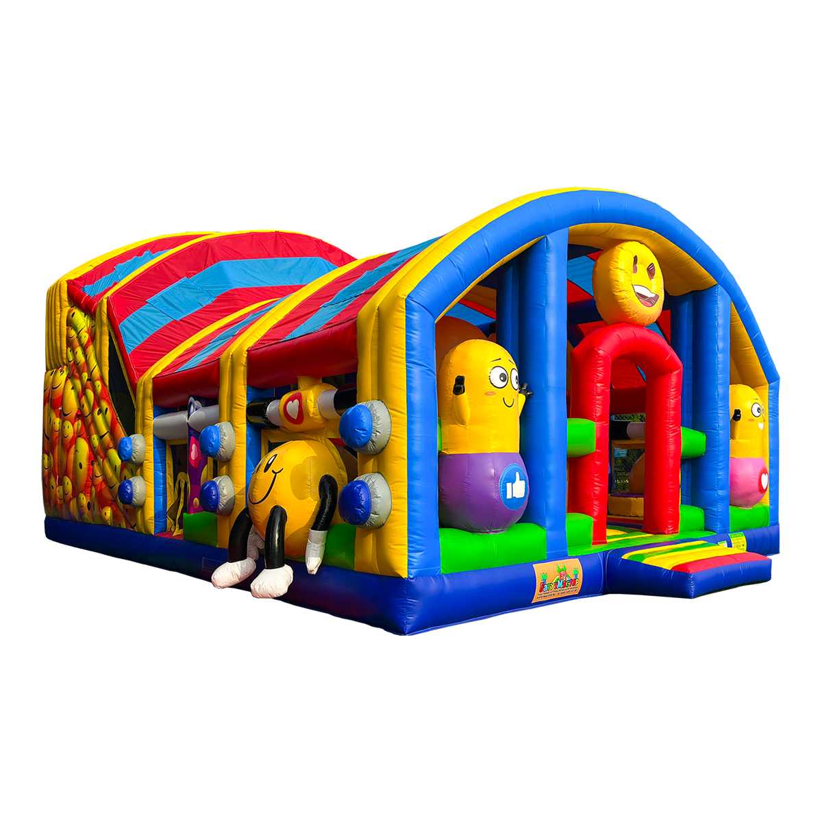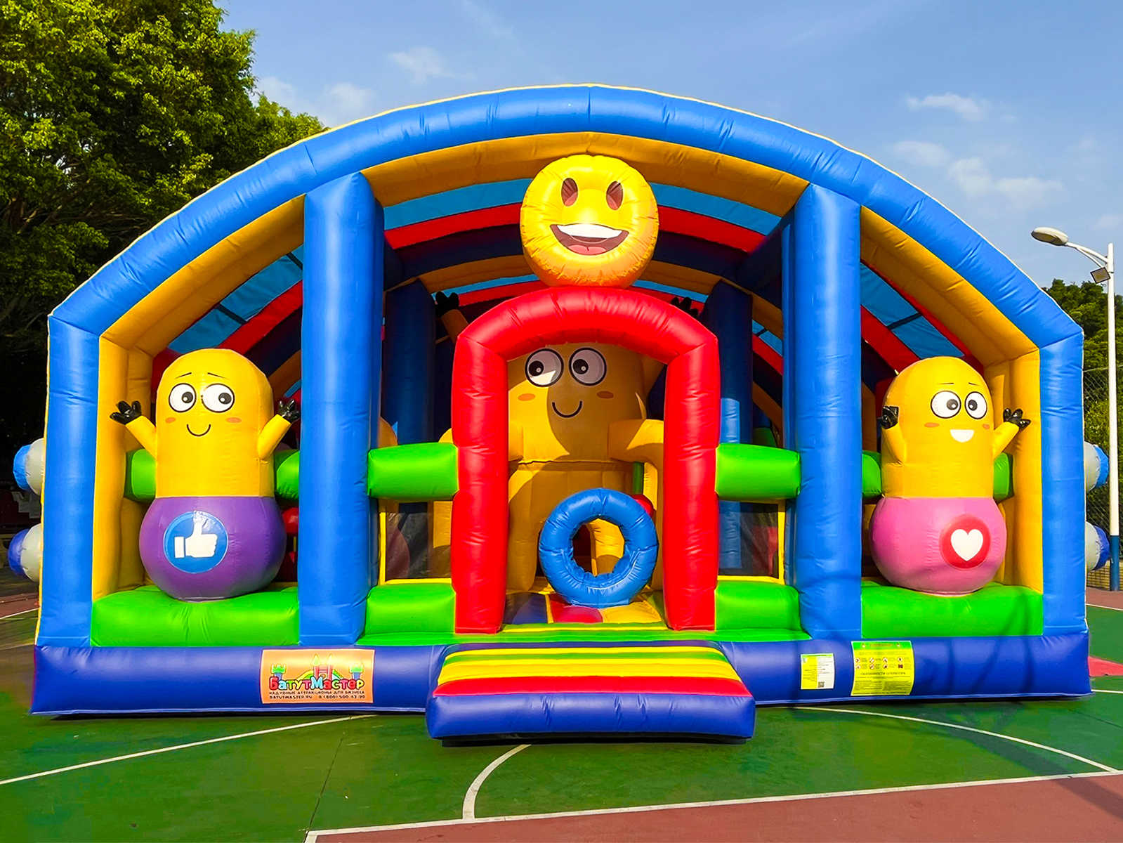 «Смайлики» — это не просто батут, а полноценный игровой центр в формате яркого, эмоционального пространства. Его дизайн в виде доброжелательных смайликов, объемных фигур и цветных арок создает сказочную атмосферу. Внутри располагаются препятствия, столбики, туннели, скалодром и высокая горка — всё для нескучного, активного времяпрепровождения. Аттракцион рассчитан на 26 детей одновременно, что делает его отличным выбором для мероприятий с большим потоком посетителей.