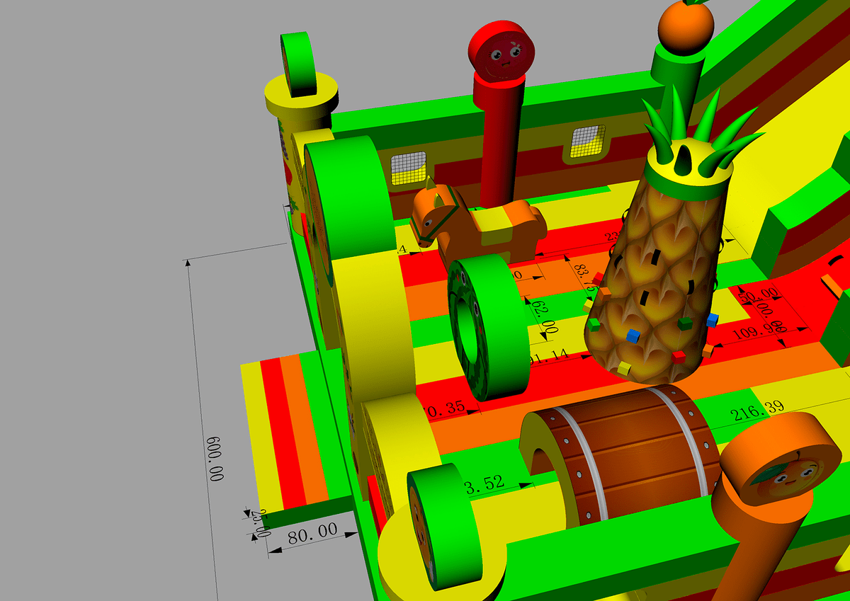Место для прыжков и для бега, Фигуры декоративные (надувные звери, персонажи, трава, деревья и тд.), Фигуры игровые (арки, столбики, груши, препятствия, лазы)