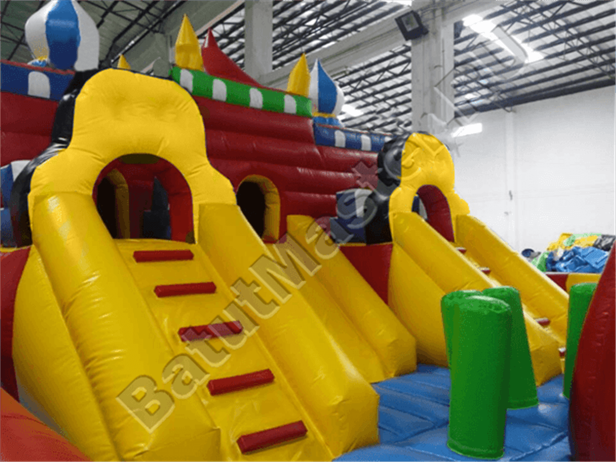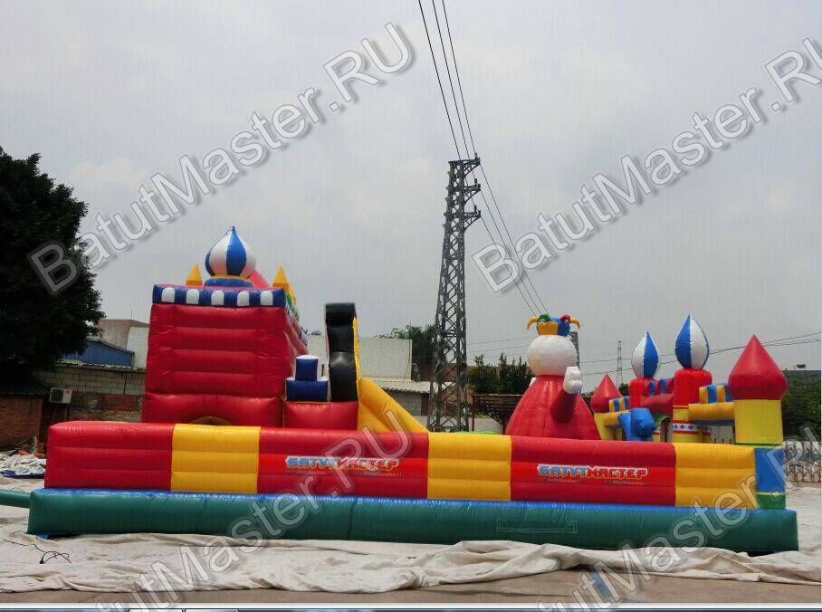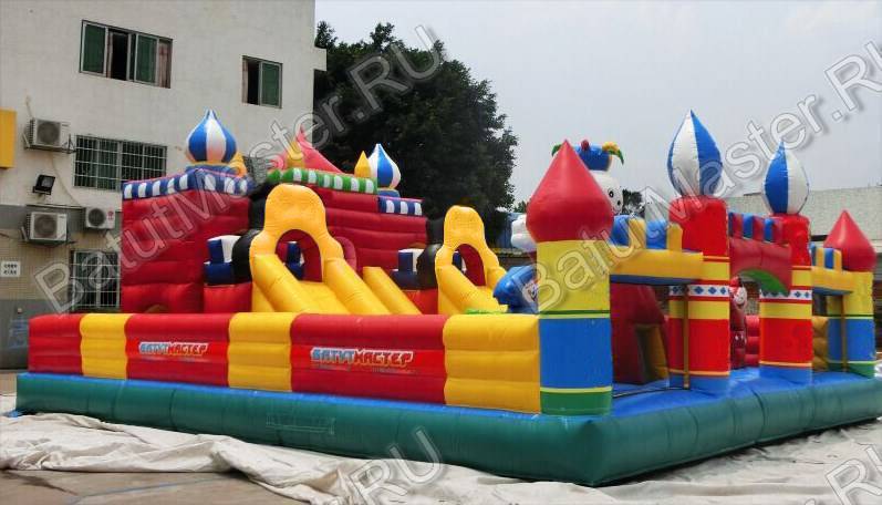 Целый надувной мини-парк развлечений и аттракционов покажется Вам просто сказочным. Дети будут в восторге от такого множественного нашествия разноплановых персонажей и веселых элементов. Батут поманит Вас своим крепостным и ярким входом с башнями, а дальше будет еще интереснее. Для уличных мероприятий это отличное средство быстрого и высокого заработка.