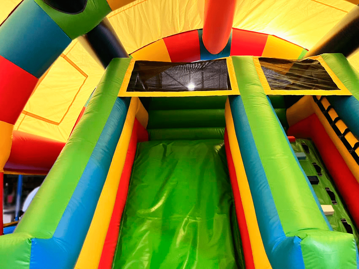 Коммерческий надувной батут для бизнеса изготовлен в самых ярких и сочных красках. Ухаживать за ним легко, он полностью мобильный и легкий.