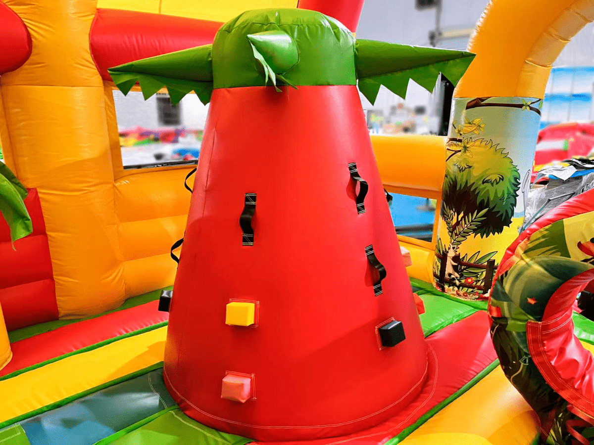 Коммерческий надувной батут «Страна Сафария» - это современный и невероятно красивый игровой комплекс, рассчитанный на детей разной возрастной категории. На нем играть так весло и беззаботно могут юные непоседы сколько угодно времени, потому что пребывание на такой арене никогда не надоест. Прямо на входе стоит воздушное кольцо, которое располагает к тому, чтобы пролезть через него. Скалодром ,который просто обожают дети стоит чуть правее и имитирует пальму. Для бизнеса это отличный инструмент.