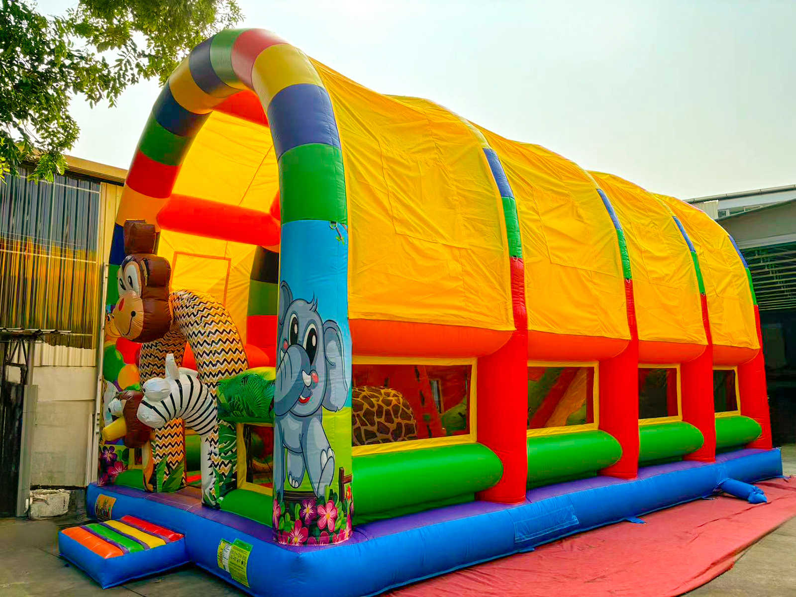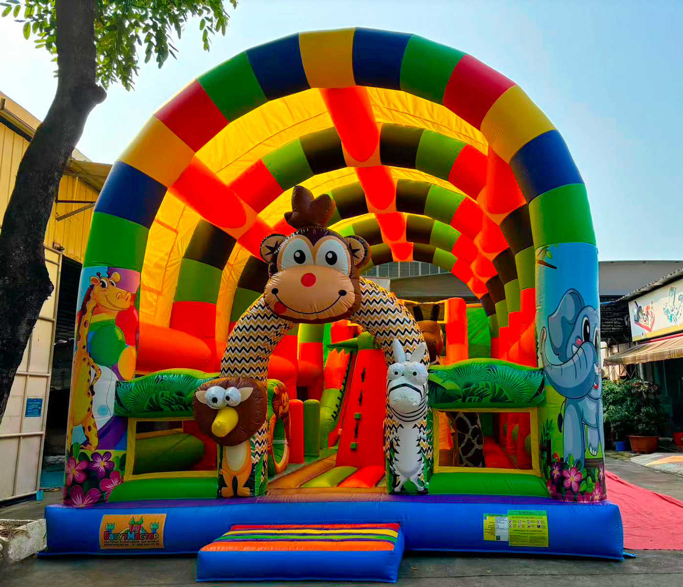 Коммерческий батут «Страна Сафария 2» — это не просто покупка, а шаг к стабильному доходу. Он окупается уже через несколько недель и продолжает работать на вас каждый день. В оформлении использованы любимые детьми животные: жирафы, зебры, обезьяны, львята и попугаи, а сам батут напоминает большую разноцветную тропическую палатку. Окна по бокам которые проходят вдоль всей длины батута обеспечивают естественную вентиляцию и гарантируют превосходную видимость для родителей и операторов, которые могут наблюдать за каждым движением детей внутри, не заходя в сам батут.