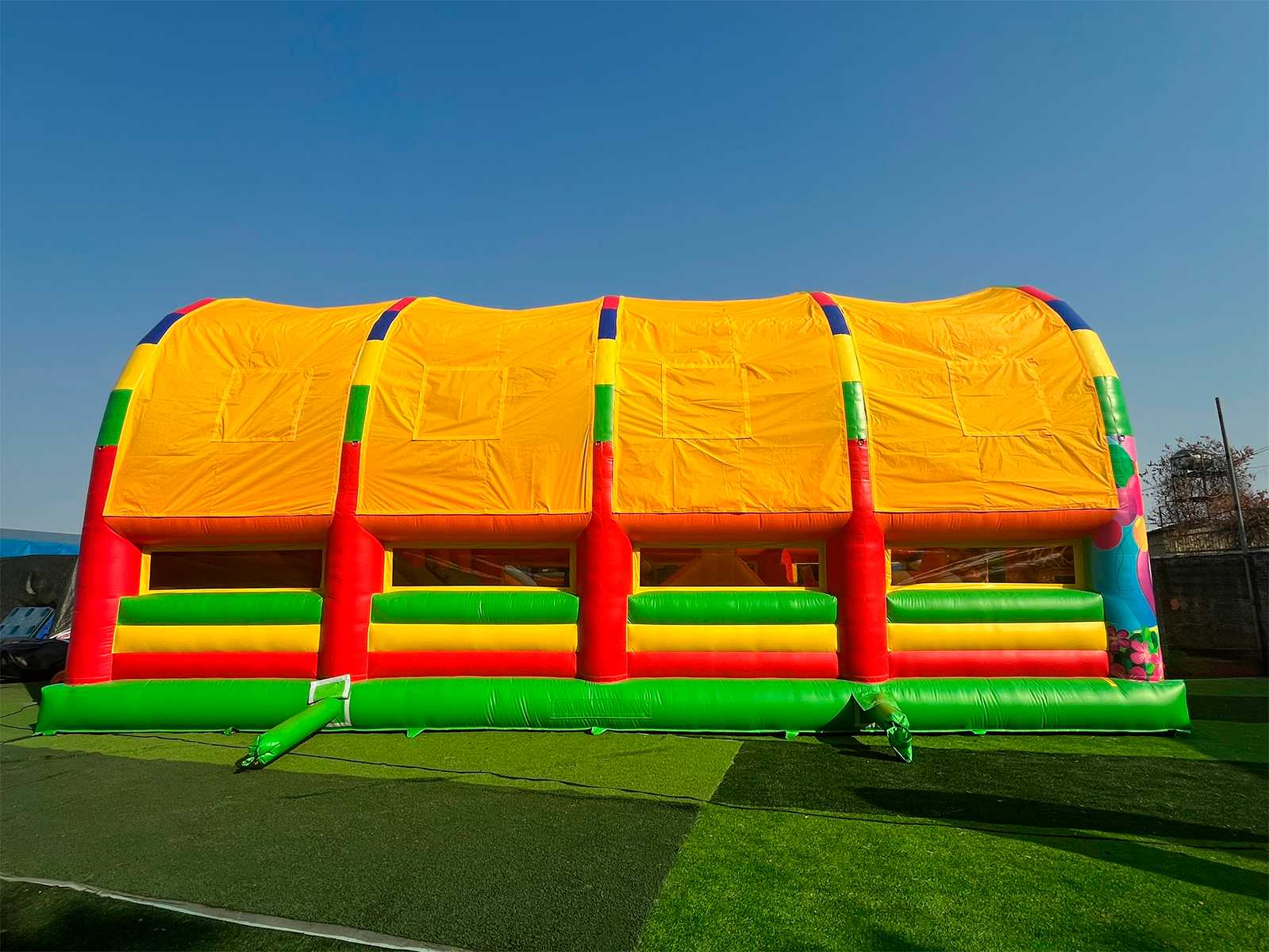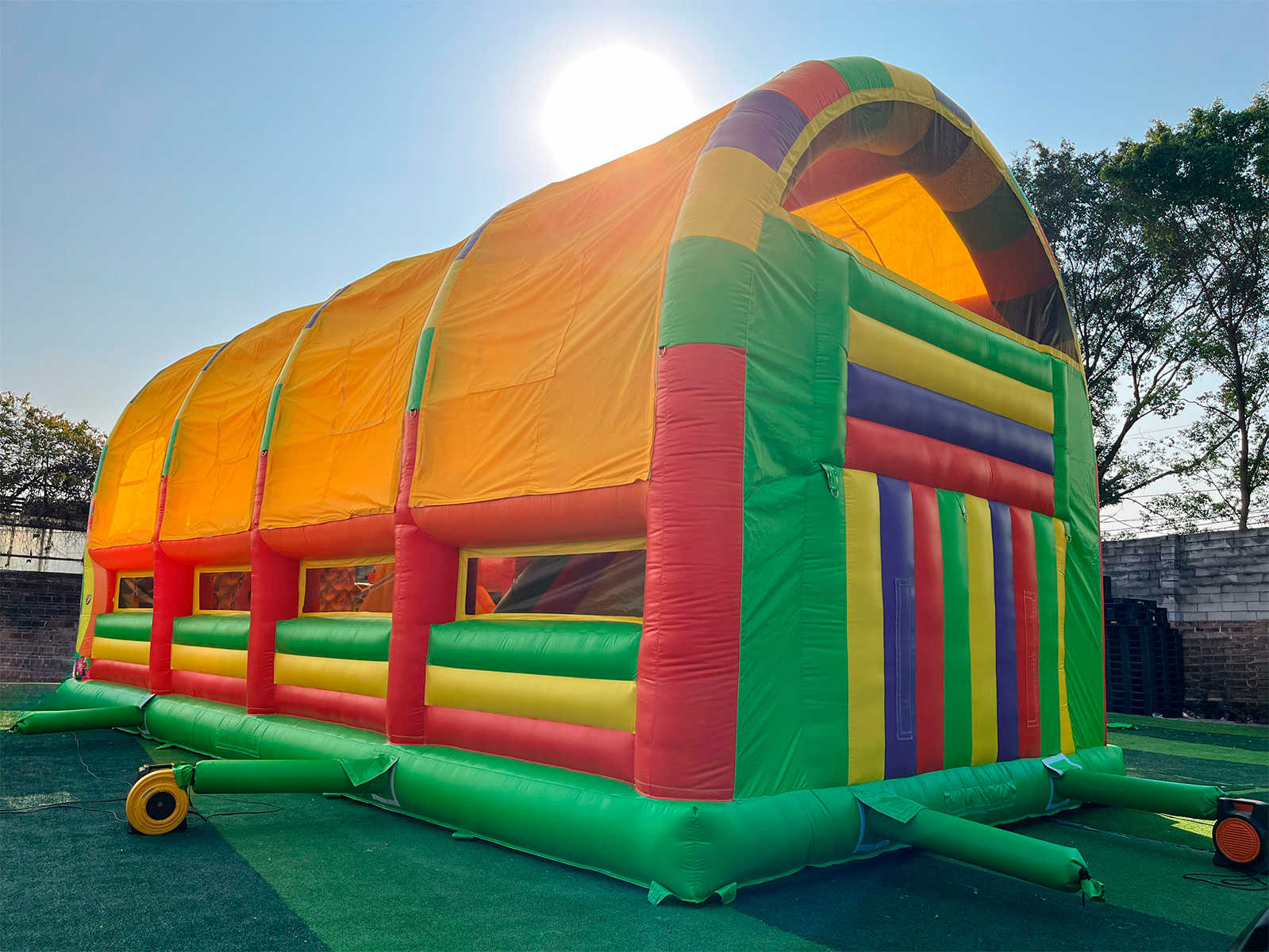 Безопасность детей — приоритет №1. Батут оснащён крышей, защищающей от солнца, высокими надувными бортами, мягкими стенами и арками. Батут рассчитан на максимальную нагрузку до 960 кг или 21 ребёнка, с учётом возраста 3–11 лет и роста до 130 см. Перед каждой эксплуатацией обязательна контрольная проверка всех элементов: креплений, вентиляционных систем, состояния оболочек и швов. При обнаружении любых повреждений эксплуатация запрещена. Монтаж и демонтаж аттракциона должен проводиться подготовленным персоналом, изучившим инструкцию. Ежедневные проверки и ежегодное освидетельствование гарантируют исправность и долговечность.
