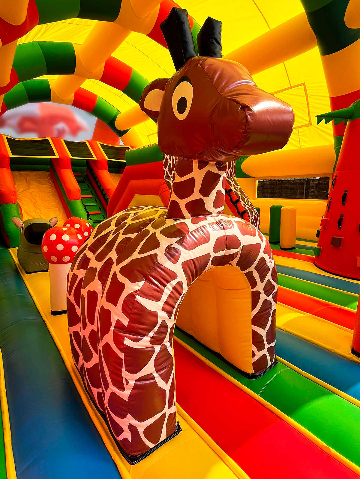- жирафы и тигрята пролазки, столбики-мухоморы, надувные зверята;