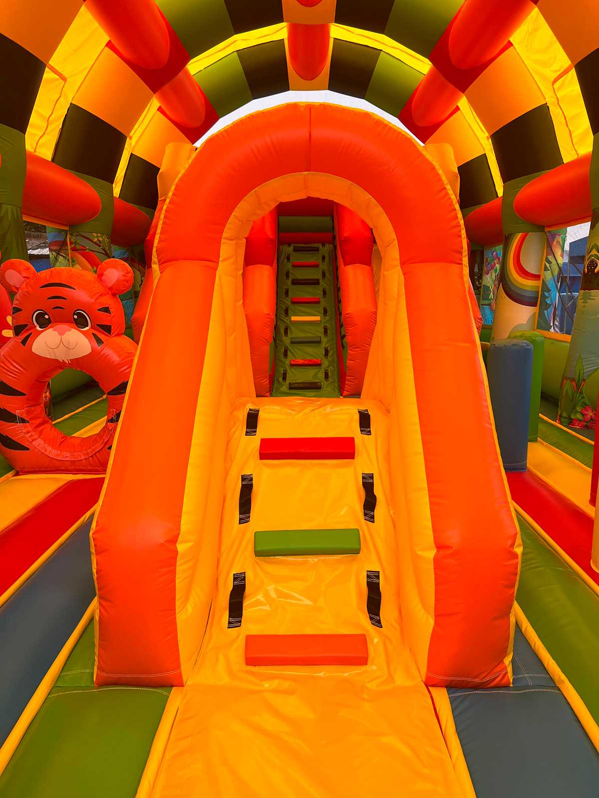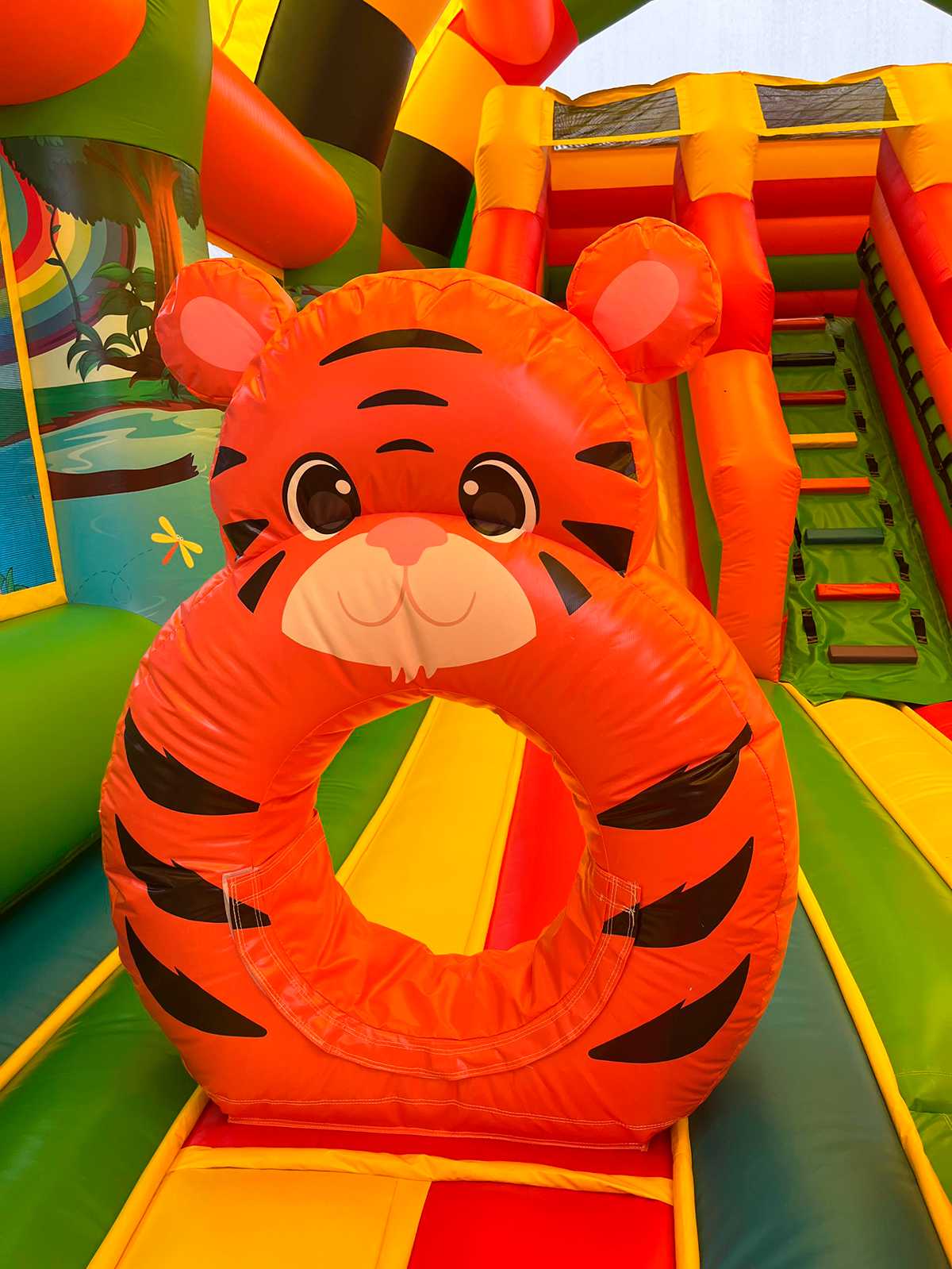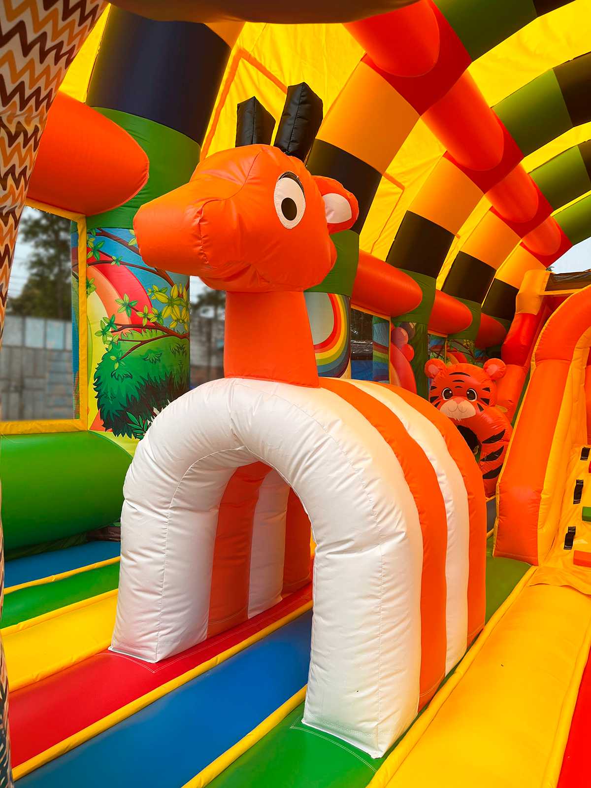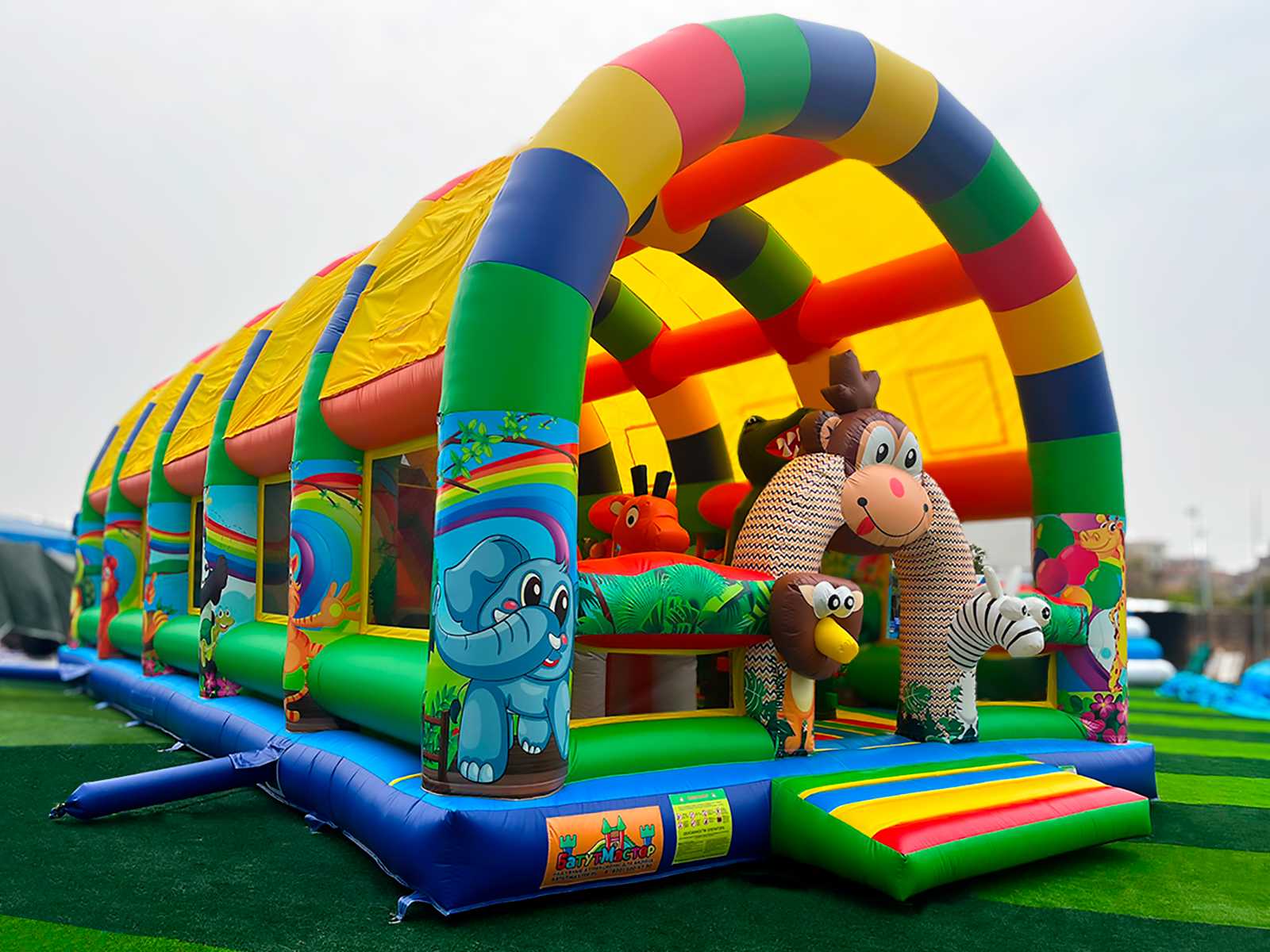 Надувной батут «Страна Сафария» 14x7x6 м — это не просто аттракцион, а целый игровой мир, где дети могут прыгать, бегать, скатываться с горки и исследовать джунгли, полные весёлых животных. Его яркий дизайн с изображениями обезьян, тигрят, львов и других зверят сразу привлекает внимание и вызывает восторг. Батут создан специально для коммерческого использования и вот где этот батут станет настоящей звездой события: