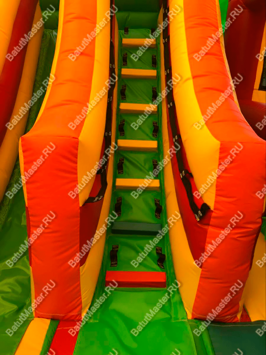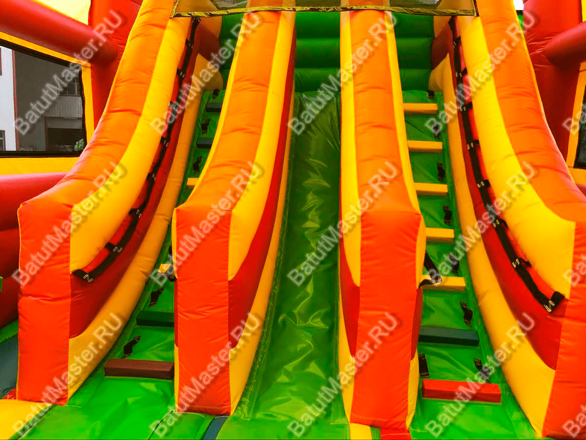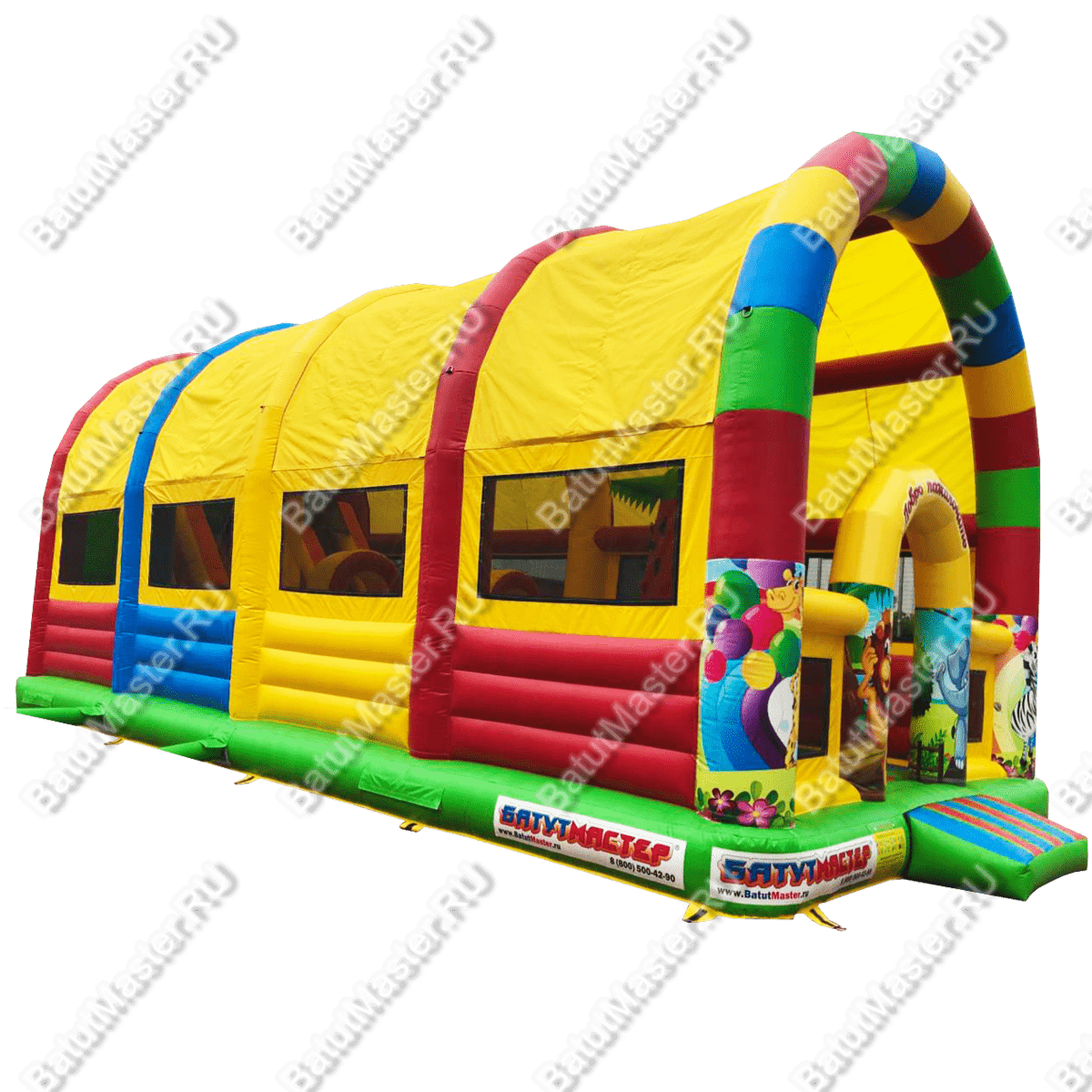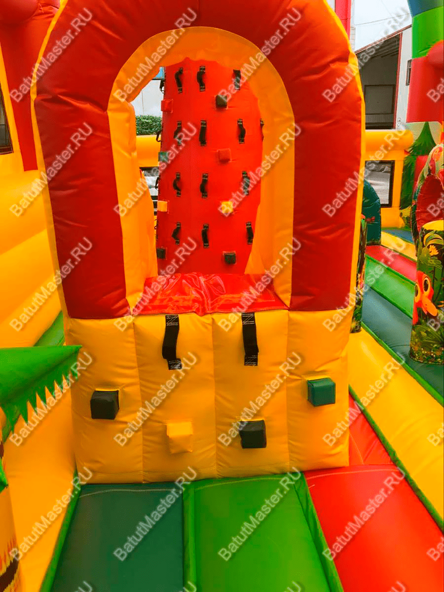 Огромный, с большим количеством различных элементов коммерческий надувной батут «Страна Сафария» поразит любое детское воображение. Этот батут универсален, ведь он будет интересен как малышам, так и детям постарше.