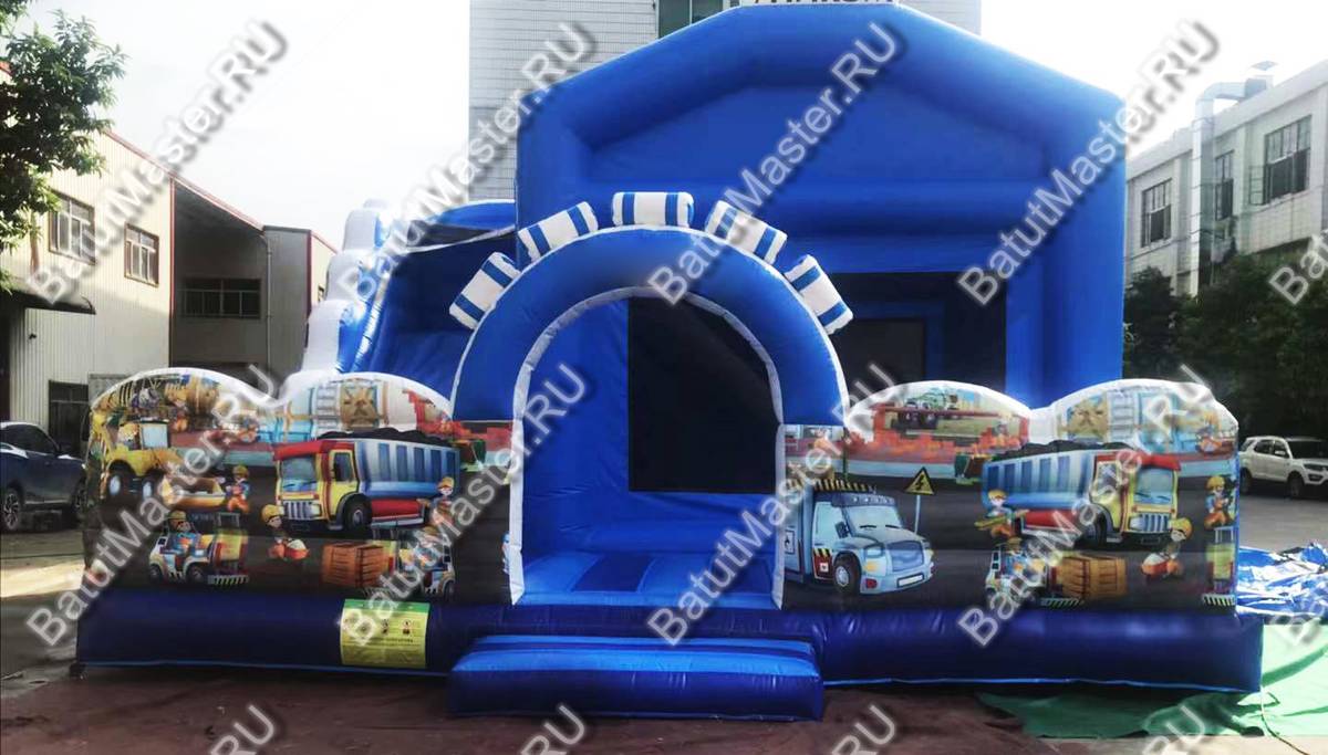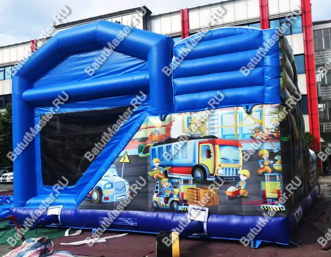 Мальчишек и девчонок ждут невероятные приключения на современном и интересном батуте «Стройка»! Он выполнен в необычном дизайне и напоминает домик с террасой. Внутри домика под крышей имеется ровное поле для прыжков, а также подъем на горку, напоминающий скалодром. Скатившись с горки, дети попадут на открытую мягкую террасу, где смогут продолжить прыжки и придумать интересные игры.