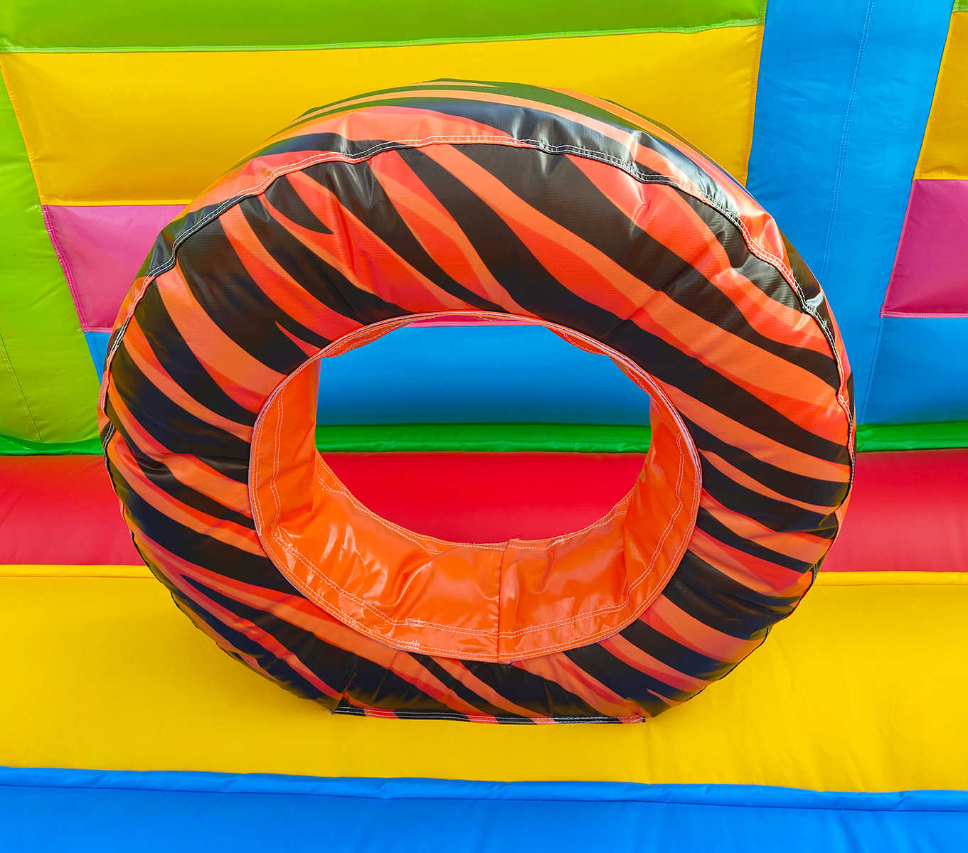 Батут «Тигриная страна 3» — это воплощение красочной мечты! С первых секунд дети попадают в атмосферу сказочных тропиков, где их встречают улыбающиеся тигрята, добрый жираф, зебра и другие персонажи. Аттракцион оформлен в насыщенных цветах — синий, жёлтый, зелёный, оранжевый — что делает его заметным издалека и мгновенно привлекает внимание посетителей. Он подходит для размещения на улицах, в парках, в ТРЦ, в детских клубах и на выездных мероприятиях. Благодаря вместимости до 14 детей и возможности окупаемости всего за 2 недели, он обеспечивает стабильно высокий доход (до 25 000 руб./день). Установка и демонтаж не требуют сложной подготовки, а также есть возможность брендирования и изменения размера/цвета по желанию.