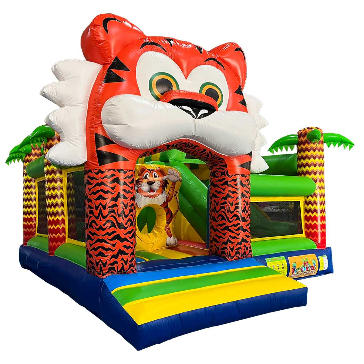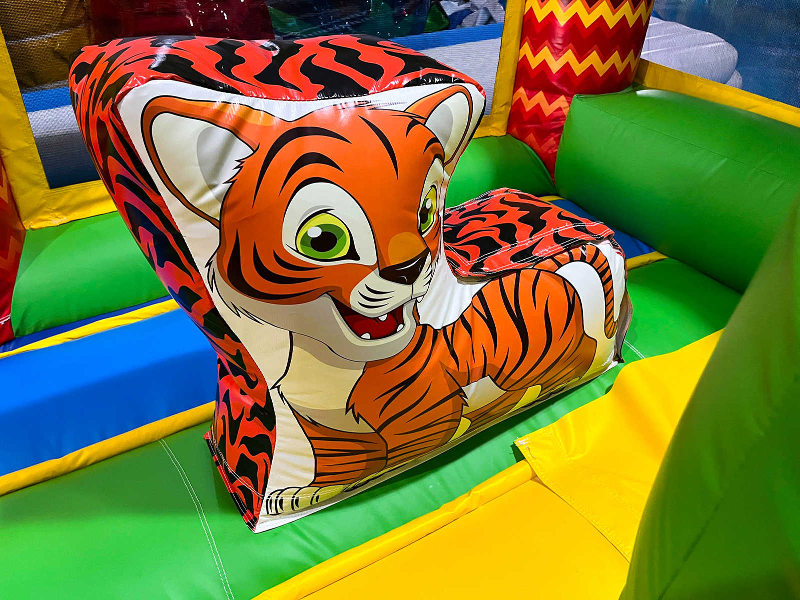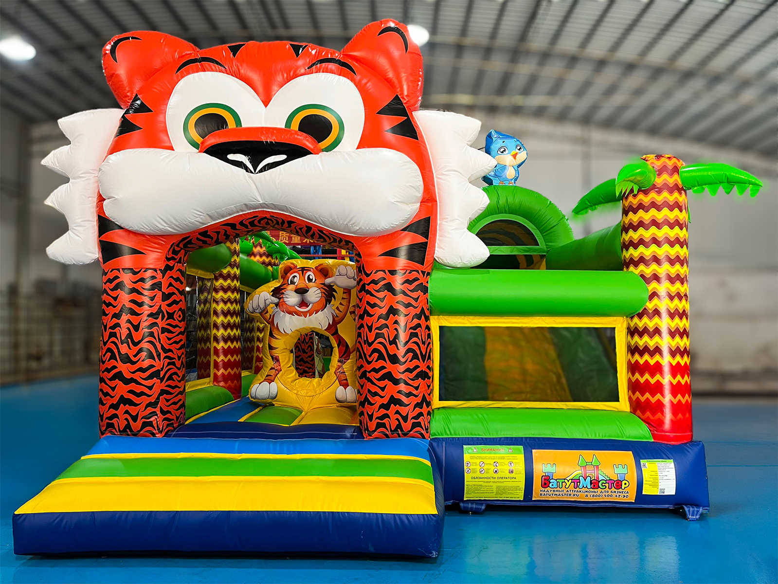 Надувной батут "Тигруша" — это полноценная игровая зона с эффектным дизайном и продуманной функциональностью, разработанная для коммерческого использования. Его размеры (4,5x4,5x3,5 м) и броская внешность с тигром на фасаде моментально привлекают внимание детей и родителей. Внутри детей ждет яркое приключение: зона для прыжков, элементы препятствий, арки, надувные фигуры и горка. Всё это создаёт активную, безопасную и невероятно увлекательную игровую среду.