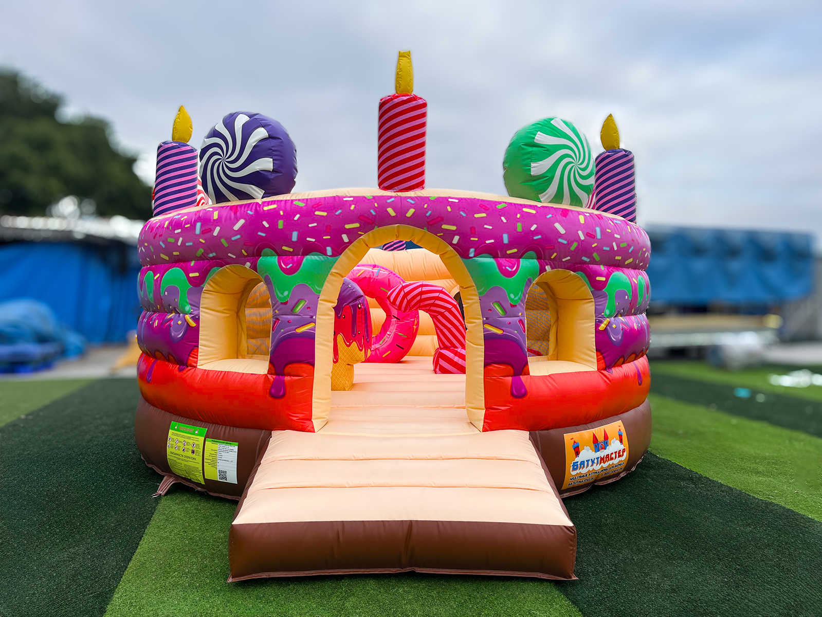 Батут «Торт» — это настоящий сладкий праздник в формате коммерческого надувного аттракциона! Он выполнен в виде гигантского торта с кремом, разноцветной посыпкой и свечками, которые сразу притягивают внимание детей. Этот батут отлично подходит для использования на улице и в помещении — в парках, ТРЦ, на ярмарках, детских праздниках и корпоративных мероприятиях. Он легко собирается, быстро окупается и оставляет незабываемые эмоции у малышей и их родителей.