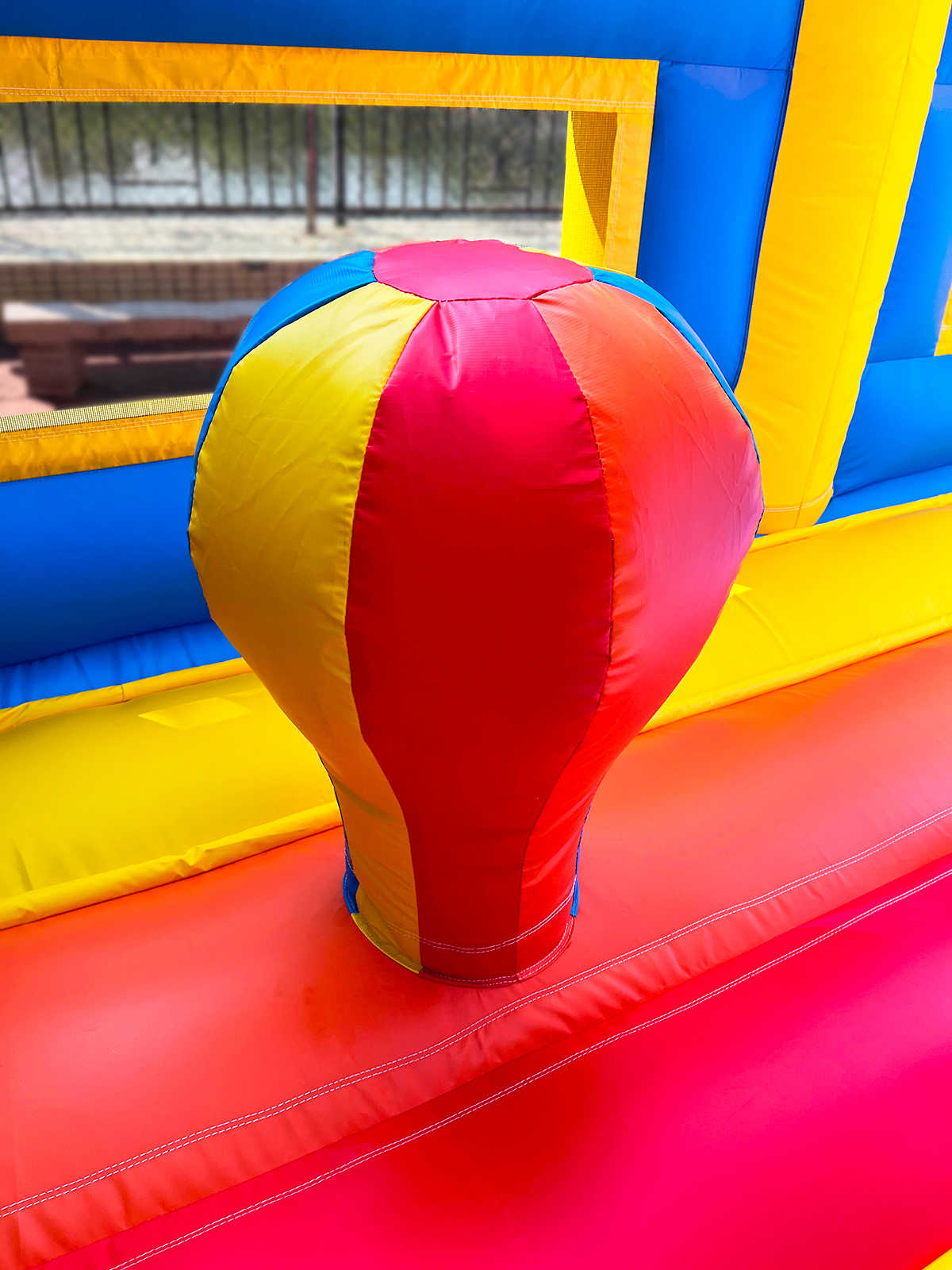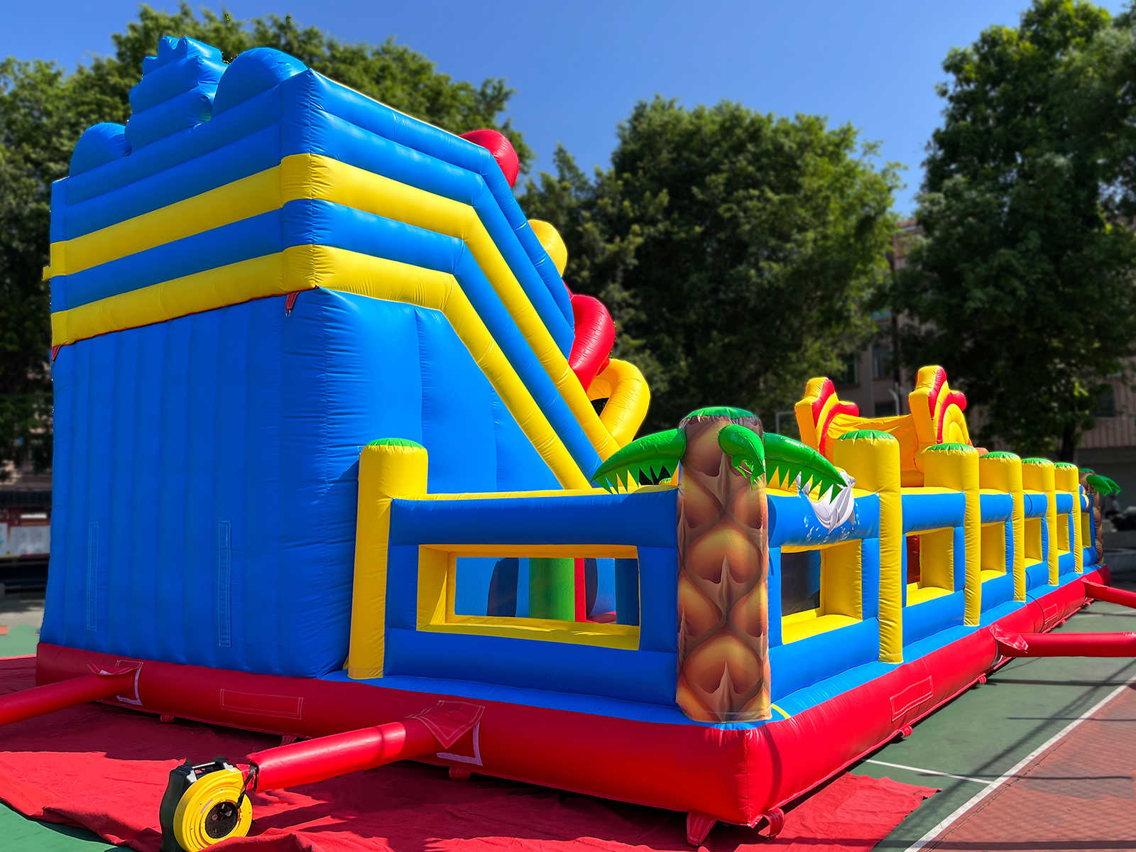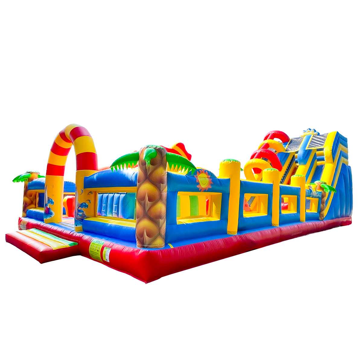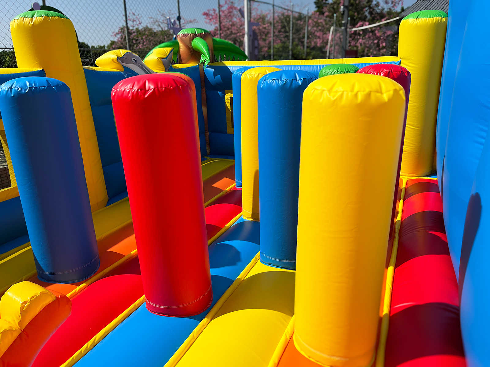 Одновременно в аттракционе могут находиться до 34 детей. Каждый элемент здесь продуман для активной игры: мягкие преграды, яркий тоннель, надувные зверушки, арки, столбики, скалодром и огромная горка, с которой спуск — настоящее приключение. Это целый мир, в котором ребёнок может прыгать, лазить, бегать и просто веселиться без остановки.