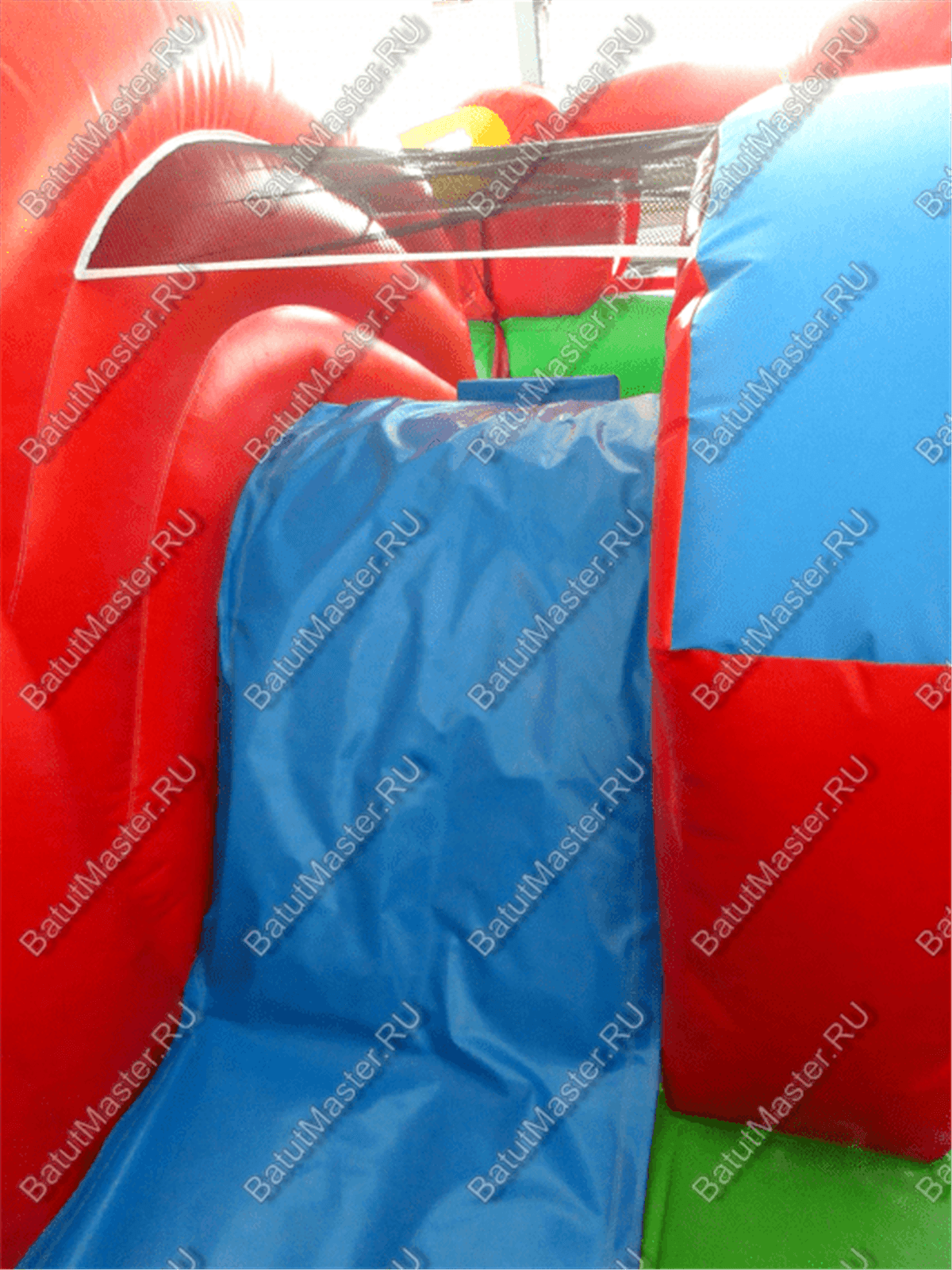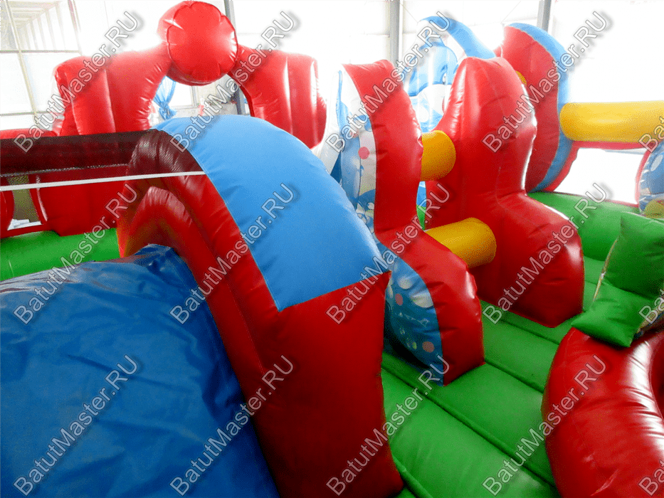 Внутри батута имеется большое количество игровых фигур в виде разных животных. Со всеми ими можно поиграть, но и это ещё не всё. Также есть тут и аттракционы с вертикальными и горизонтальными грушами, по которым можно ползать.