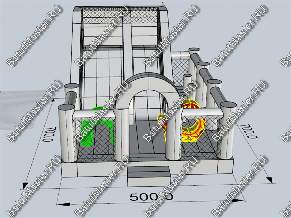 Парадная арка и колонны рядом искрятся разноцветными звёздочками, и это вызовет у детей непреодолимое желание пройти внутрь и поскорее поиграть с весёлыми аттракционами.