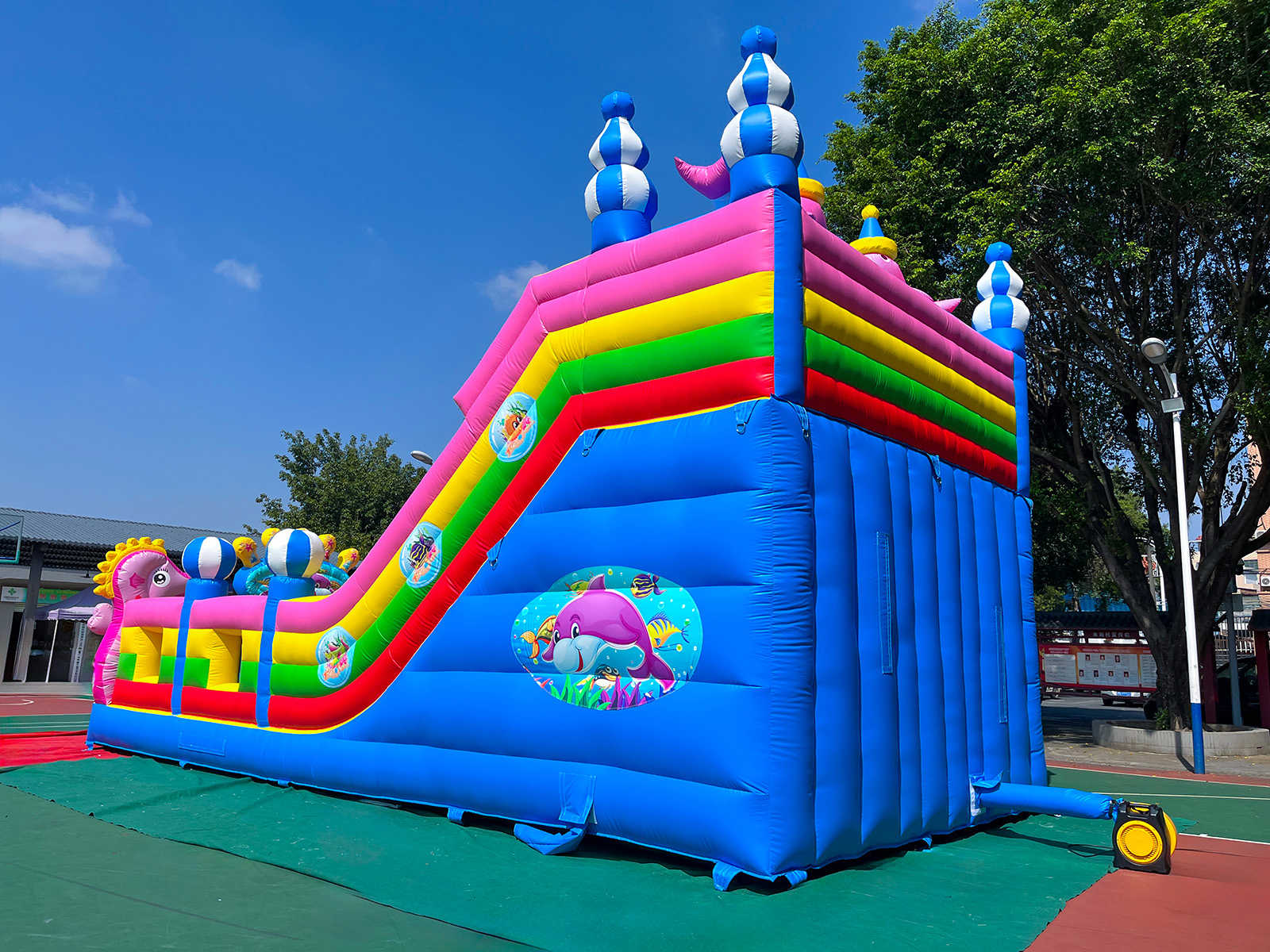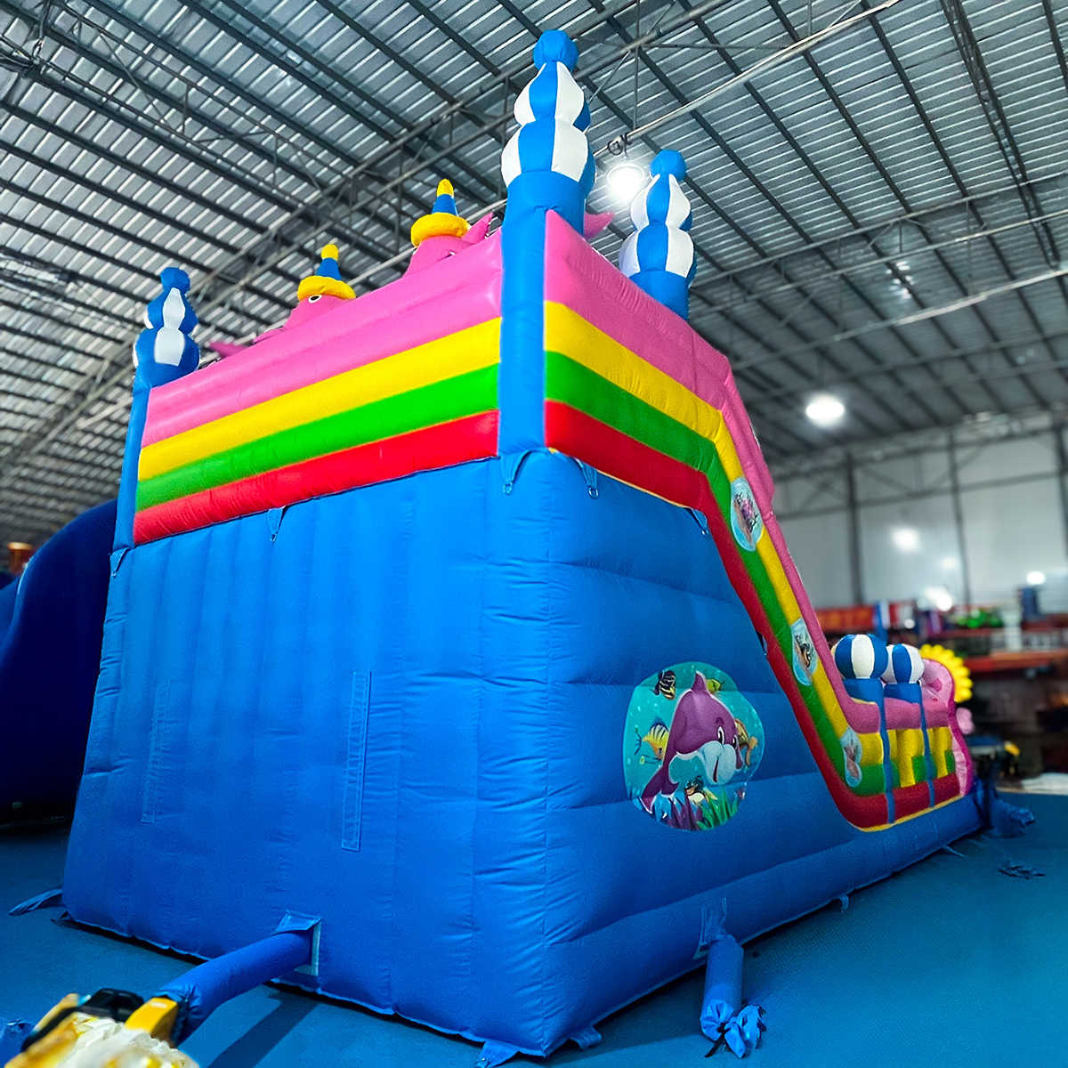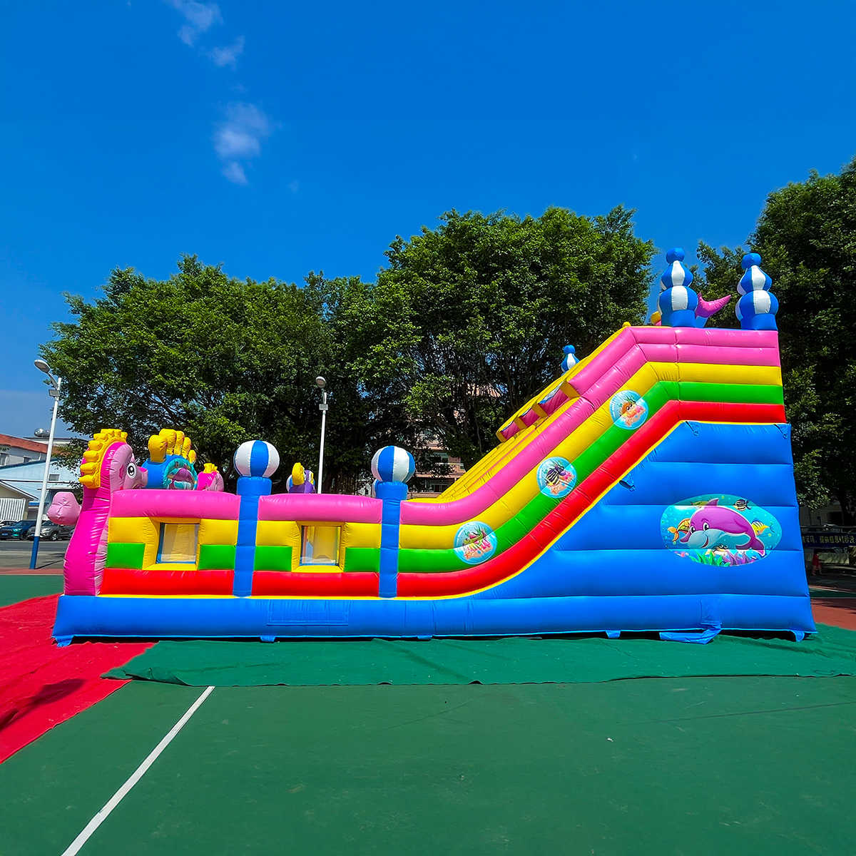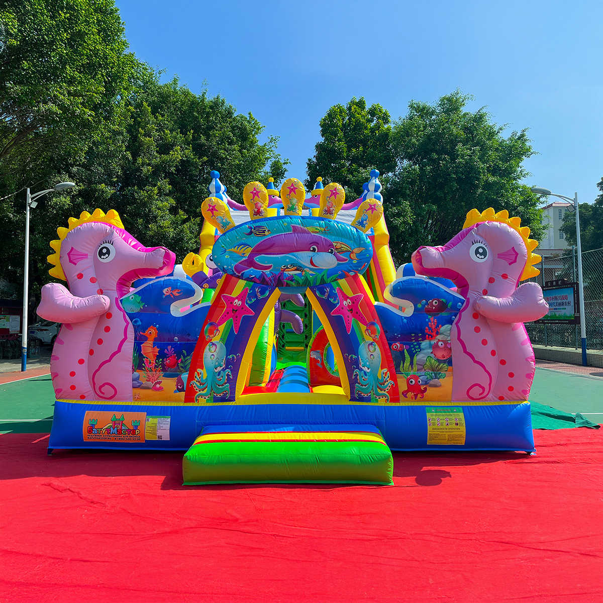 Надувной батут «В гостях у дельфинов 2» 10x5x5 м — это не просто развлекательный комплекс, а захватывающий мир морских глубин, где каждый ребёнок может почувствовать себя отважным исследователем океана. Цветные дельфины, яркие розовые морские коньки и насыщенные цвета делают этот аттракцион настоящим магнитом для внимания. Это не просто игровая зона, это инвестиция, которая начинает приносить прибыль уже с первых дней аренды или запуска.