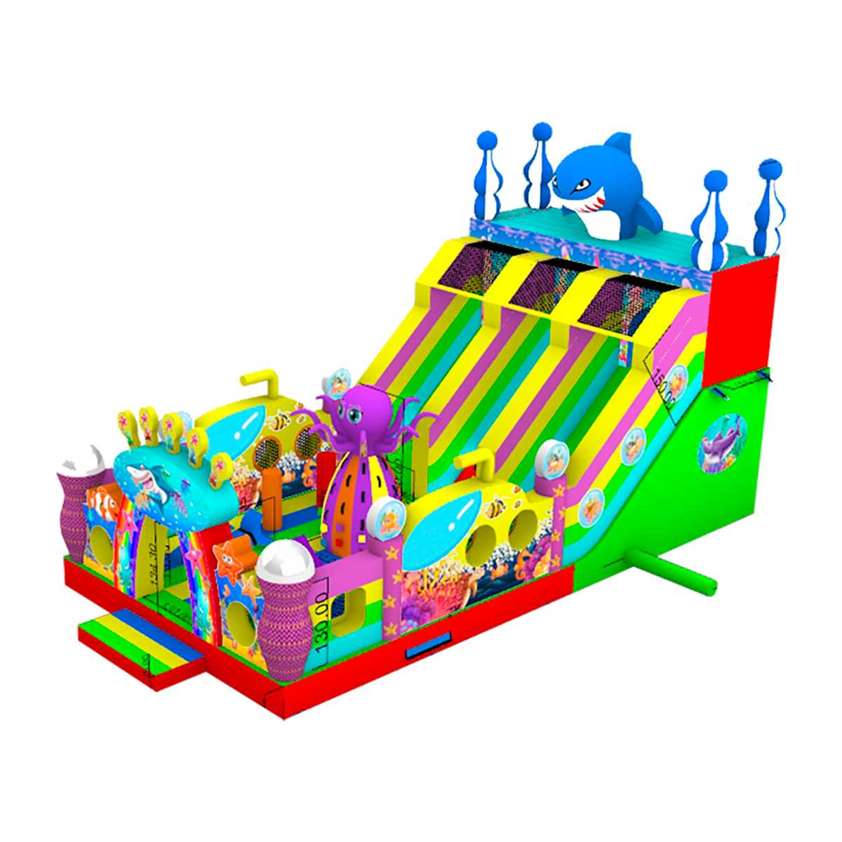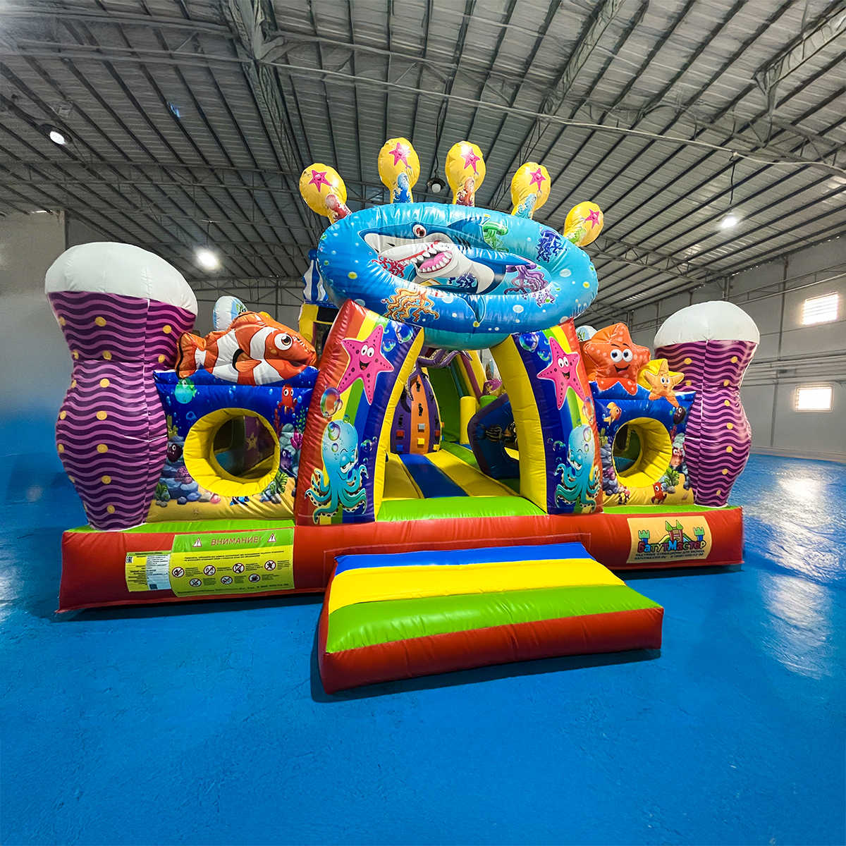 Коммерческий батут «В гостях у моря 3» — это батут размером 10x5x5 метров, выполненный в яркой морской тематике с акулами, осьминогами, рыбками и кораллами. Он предназначен для активных игр детей от 4 до 11 лет и подходит как для установки в помещении, так и на открытом воздухе. Батут легко привлекает внимание, становится центром притяжения на любом мероприятии и мгновенно повышает трафик в вашем бизнесе.