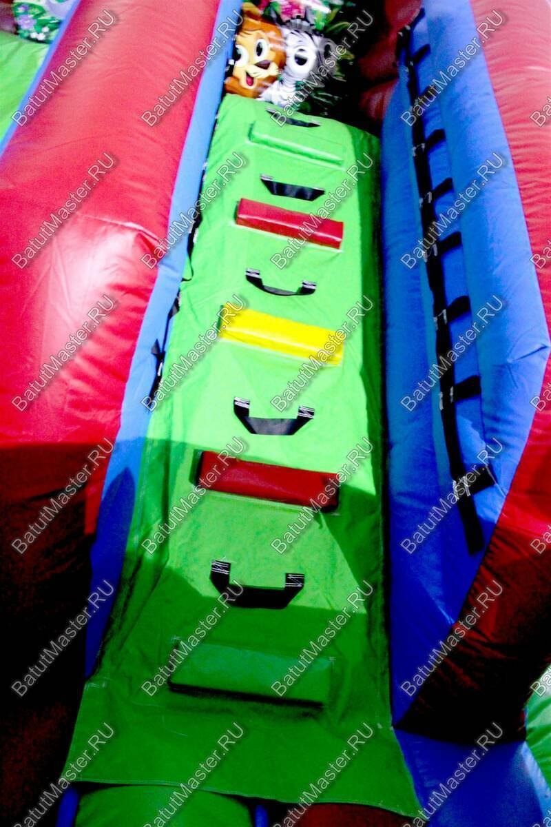 Детишки же остаются в полном восторге после посещения надувных аттракционов, и особенно им запомниться именно этот батут. Аттракцион привлечёт внимание маленьких посетителей ещё издалека, ведь трудно не заметить такое буйство ярких красок. Отдельно стоит выделить потрясающие декорации с яркими и качественными принтами. Дети без сомнения узнают любимых забавных животных и птичек. Зверюшки нарисованы с забавными мордочками и большими выразительными глазами, что очень важно для малышей.