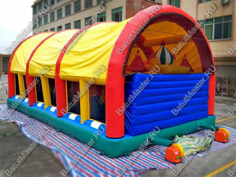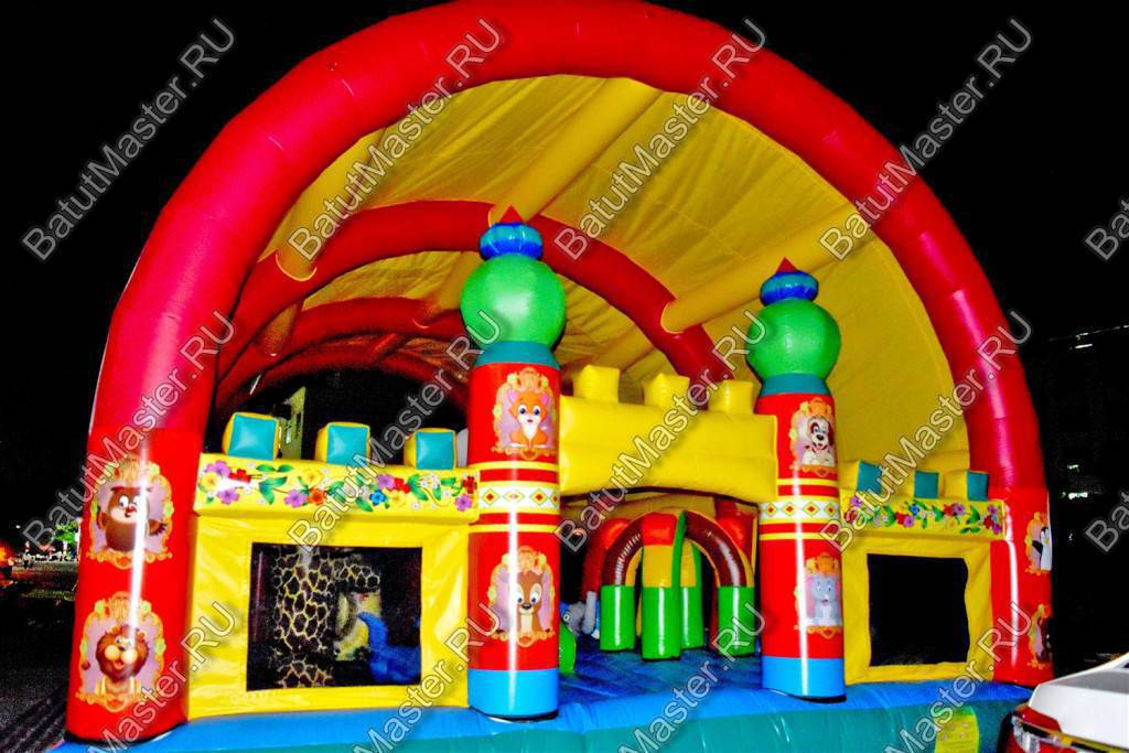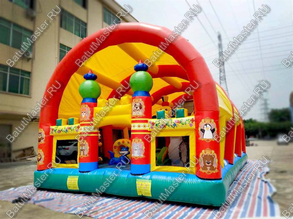 Коммерческий надувной батут "Веселый дом и звери в нём" с крышей 14*7*6 м